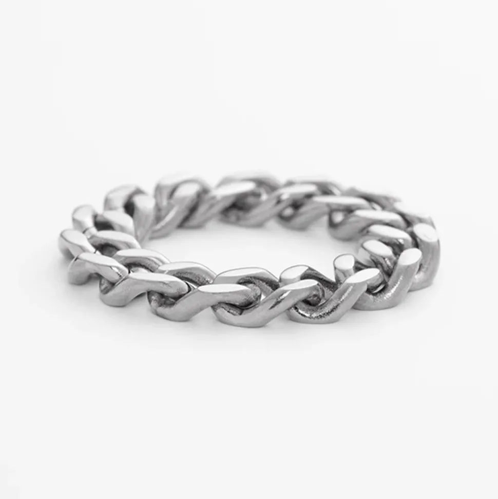 Das perfekte Accessoire für markante Styles – das ist dieser Damenring. Er ist aus Edelstahl gefertigt und hat eine Panzerketten-Optik. Der Ring ist nicht starr, sondern in seinen Gliedern flexibel.