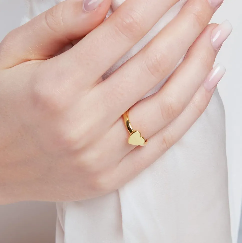 Dieser Herzring ist perfekt geeignet, um ein ganz persönliches Schmuckstück zu kreieren! Er ist aus 925er Sterlingsilber gefertigt, welches mit einer hochwertigen IP-Beschichtung aus edlem Gold versehen ist. Es besteht die Möglichkeit sowohl den herzförmigen Ringkopf als auch die Innenseite der Ringschiene von unseren Graveuren mit einer Widmung, einem Namen oder Datum versehen zu lassen. Dadurch, dass der Ring nach eigenen Vorstellungen individualisiert werden kann, eignet er sich auch hervorragend als Geschenkidee. Die schmale Ringschiene sorgt für einen hohen Tragekomfort.