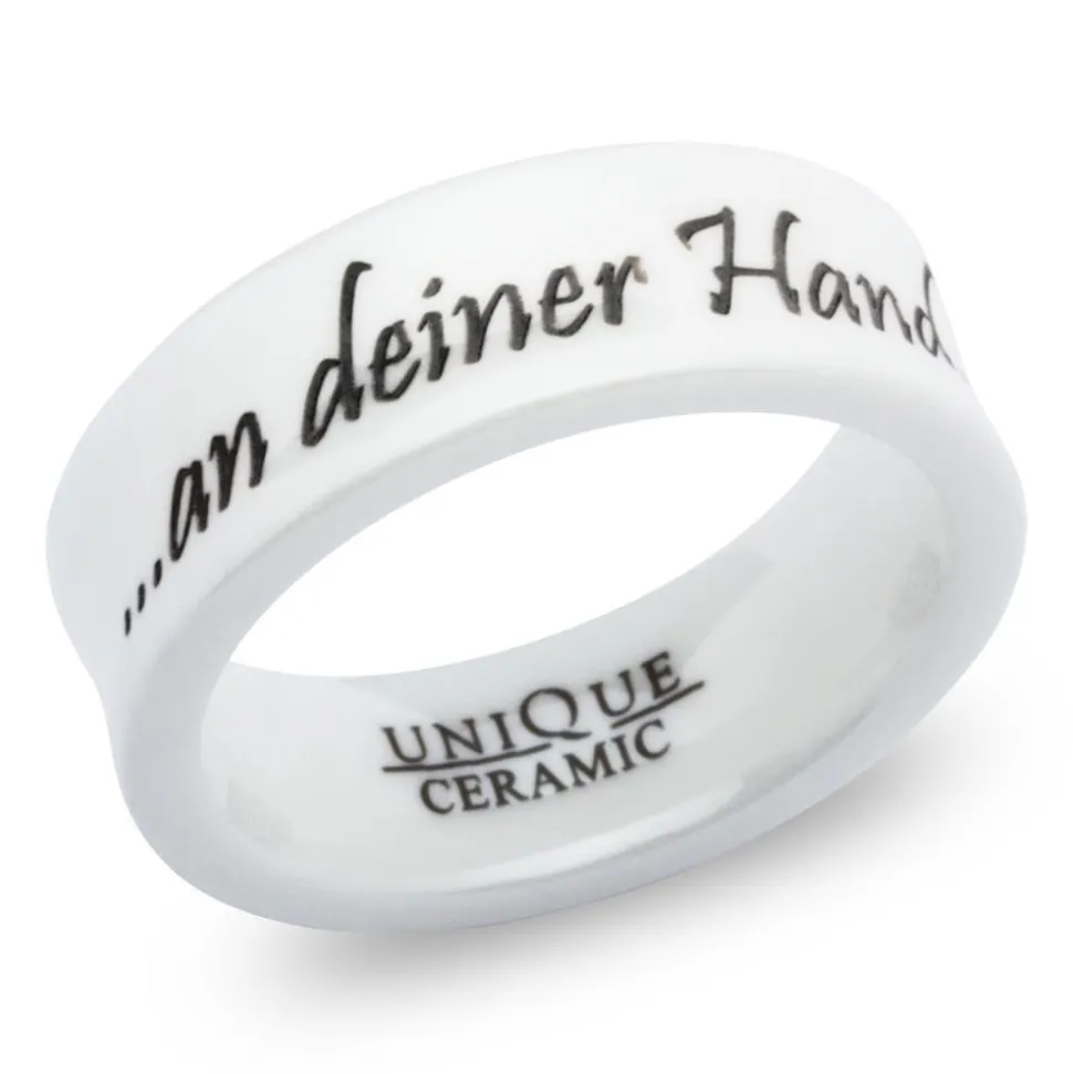 Hochwertiger weißer Keramikring in 7mm Breite inkl. Gratis-Etui. Der Ring kann kostenlos mit einer Lasergravur versehen werden. Alle unsere Keramikringe sind bombiert (von Innen abgerundet) und daher angenehm zu tragen.