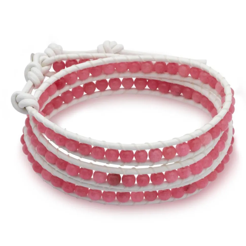 Frischer Farbtupfer – weißes Lederarmband mit pinken Perlen