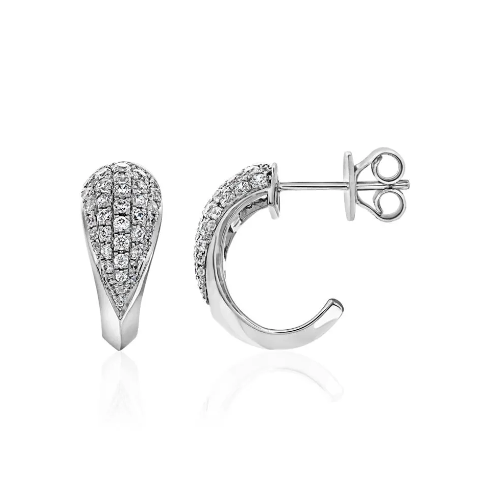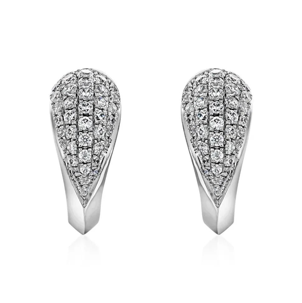 Klassisch schön – das ist dieser Ohrschmuck für Damen in Halb-Creolen-Form. Es kann gewählt werden, ob die Ohrstecker aus 585er oder 750er Weißgold oder 950er Platin bestehen sollen. Dafür bitte das entsprechende Material im Drop-down-Feld auswählen. Jeder Stecker ist mit brillantgeschliffenen Diamanten (beide zusammen: 86; ca. 0,73 ct.; Farbe: Top Wesselton; Reinheit: small inclusions) in umgedrehter Tropfenform besetzt. Wir legen bei unserem Diamantschmuck nicht nur Wert auf eine exzellente Qualität, sondern auch auf ethische Aspekte.