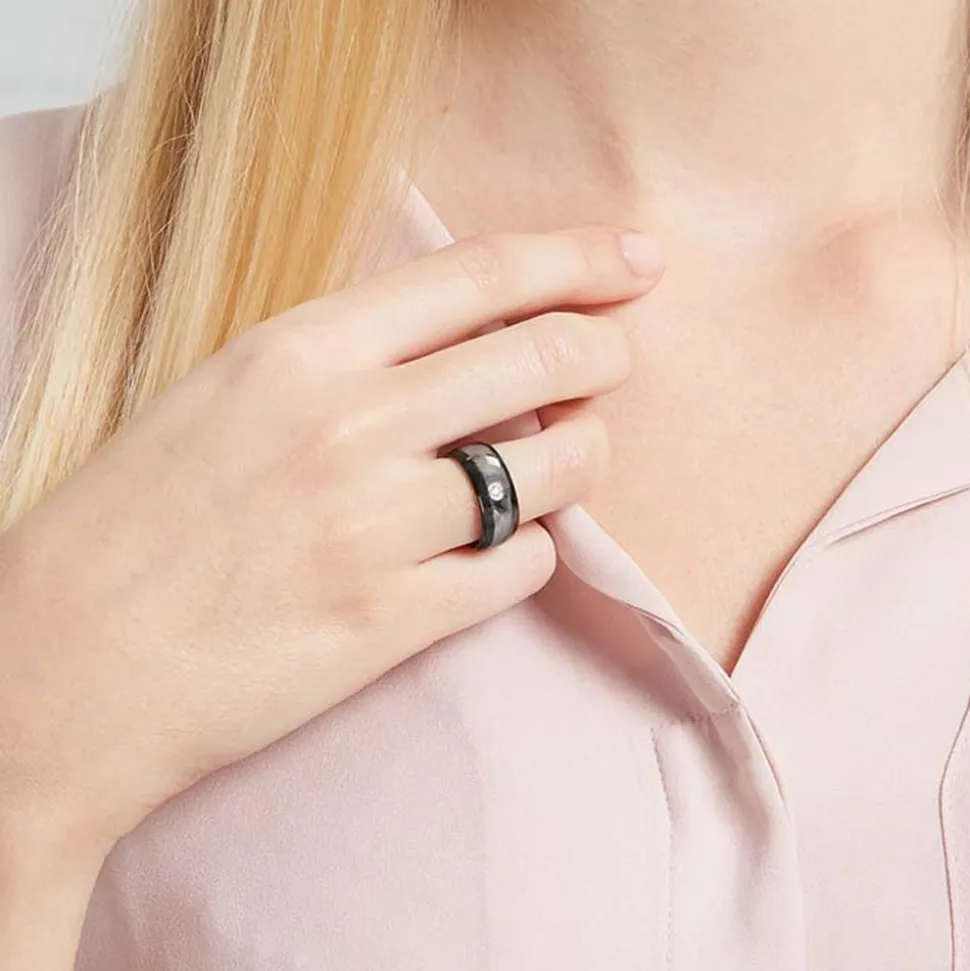 Moderner Ring aus hochwertigem Wolfram. Der Ring besitzt eine zweifarbige Oberfläche. Der Ring ist bombiert (von Innen abgerundet) und daher angenehm zu tragen. Der Ring ist zudem mit einem Zirkonia besetzt. Der Ring kann mit einer Laserinnengravur versehen werden.