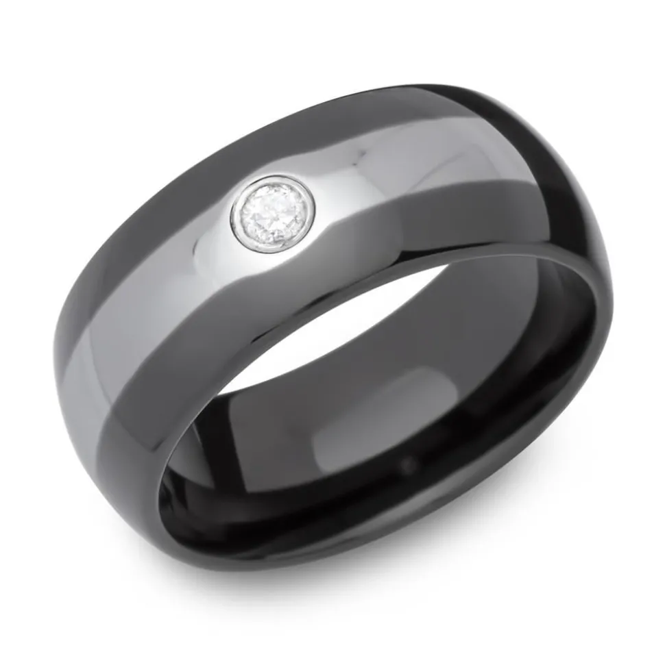 Trendig – Bicolorer Ring aus Wolfram mit Zirkonia