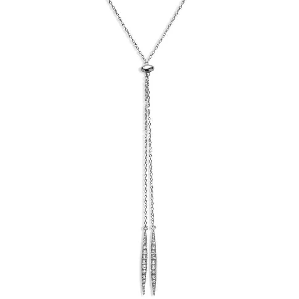 Zwei längliche Anhänger schmücken diese Kette im Y-Design aus poliertem Sterlingsilber. Die beiden Anhänger sind auf ihrer Vorderseite vollkommen mit reinweißen Zirkonia besetzt, die, je nach Lichteinfall, für ein zauberhaftes Funkeln sorgen. Zudem ist die feminine Kette ein echtes Kombinationstalent, Sie werden begeistert sein. Die Kette wird mit einem klassischen Karabinerverschluss geschlossen und kann, durch eine Verlängerungskette, in der Länge variiert werden. Zudem ist die Halskette rhodiniert und somit anlaufgeschützt sowie widerstandsfähig gegen äußere Einflüsse.
