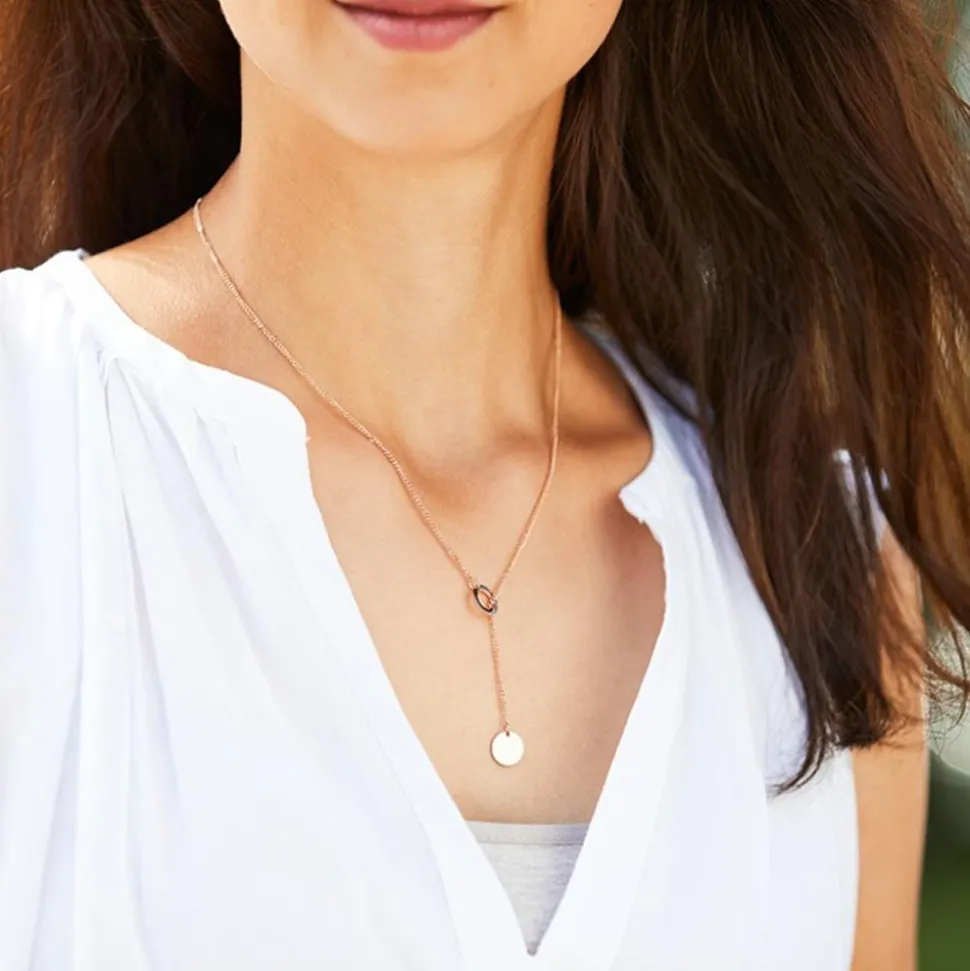 Diese Y-Kette verleiht jedem Look eine stylishe Eleganz und passt sowohl zu einem legeren Freizeitoutfit, zu einem klassischen Businesslook als auch zu einem festlichen Abenddress. Die Kette besteht aus kratzfestem Edelstahl, welcher mit einer hochwertigen Rosévergoldung beschichtet wurde. Eyecatcher ist der runde Anhänger, welcher von uns auf der Vorder- und Rückseite mit einer individuellen Gravur versehen werden kann. Als Schlaufenverschluss dient ein Kreis.Die filigrane Kette besitzt einen zusätzlichen Karabinerverschluss und ist in der Länge regulierbar.
