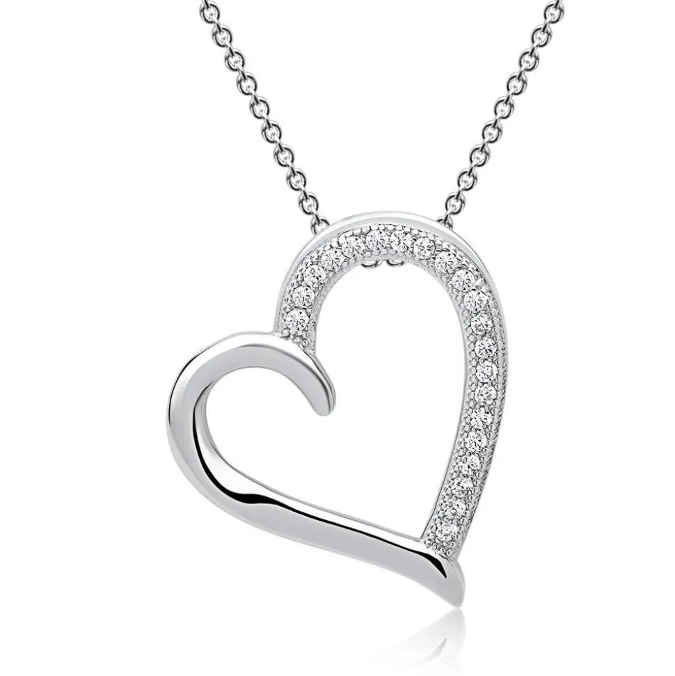 Dieser extravagante Silber-Anhänger hat als Motiv ein Herz. Die eine Seite des Herzes ist mit schönen Zirkonia-Schmucksteinen besetzt. Der Anhänger ist durch die Rhodinierung vor dem Anlaufen geschützt. Bei Wunsch können Sie sich eine passende Kette dazu bestellen.