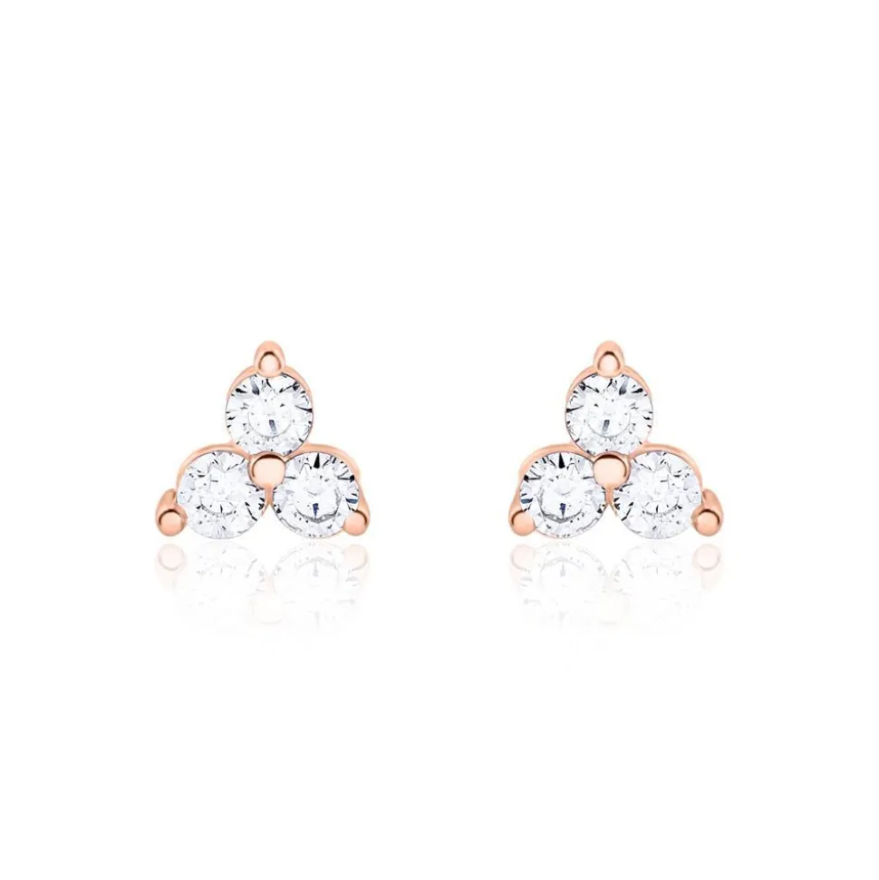 Minimalistisch und trendig – das sind diese Damen-Ohrstecker aus rosévergoldetem Sterlingsilber mit weißen Zirkonia, die im Dreieck angeordnet sind.