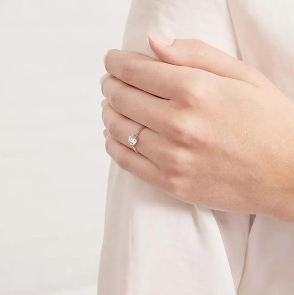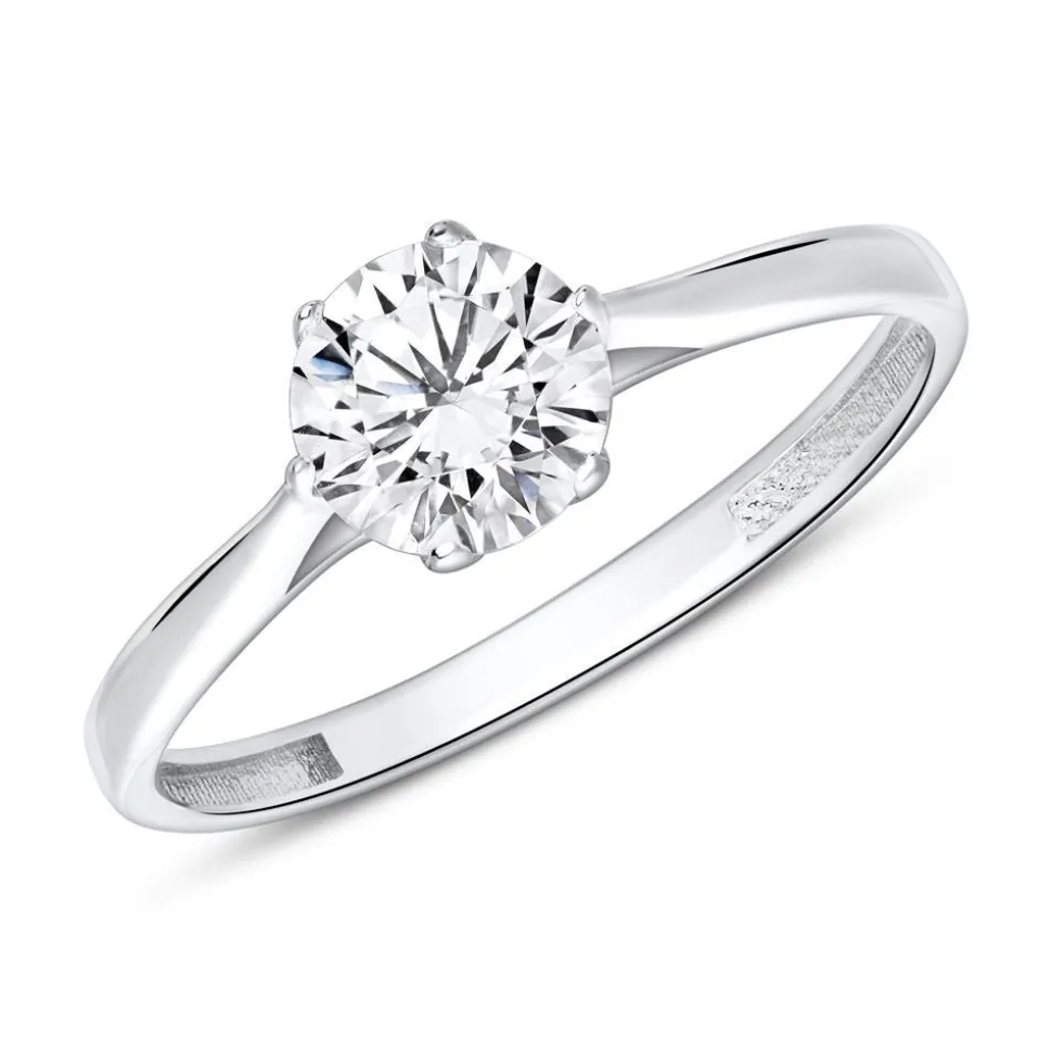 Dieser klassische Solitärring eignet sich hervorragend als Verlobungsring! Er besteht aus 9-karätigem Weißgold und besitzt einen krappengefassten Zirkonia als Blickfang. Die schmale Ringschiene sorgt für ein angenehmes Tragegefühl.