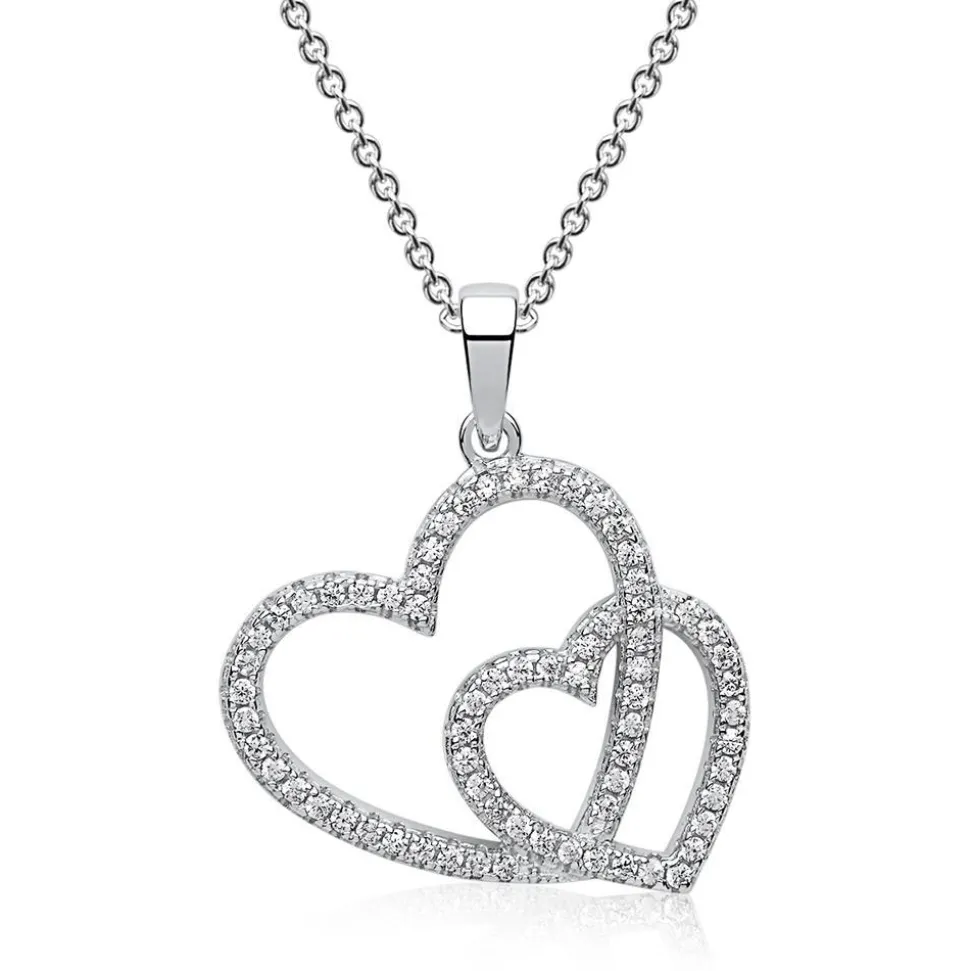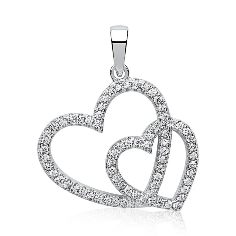 Dieser Anhänger funkelt einen förmlich an. Die beiden Herzen sind eineinander vereint und bilden so einen wunderschönen Anhänger. Das Funkeln verdankt dieser Silber-Anhänger den Zirkonia-Steine. Optional können Sie eine passende Kette dazu bestellen.