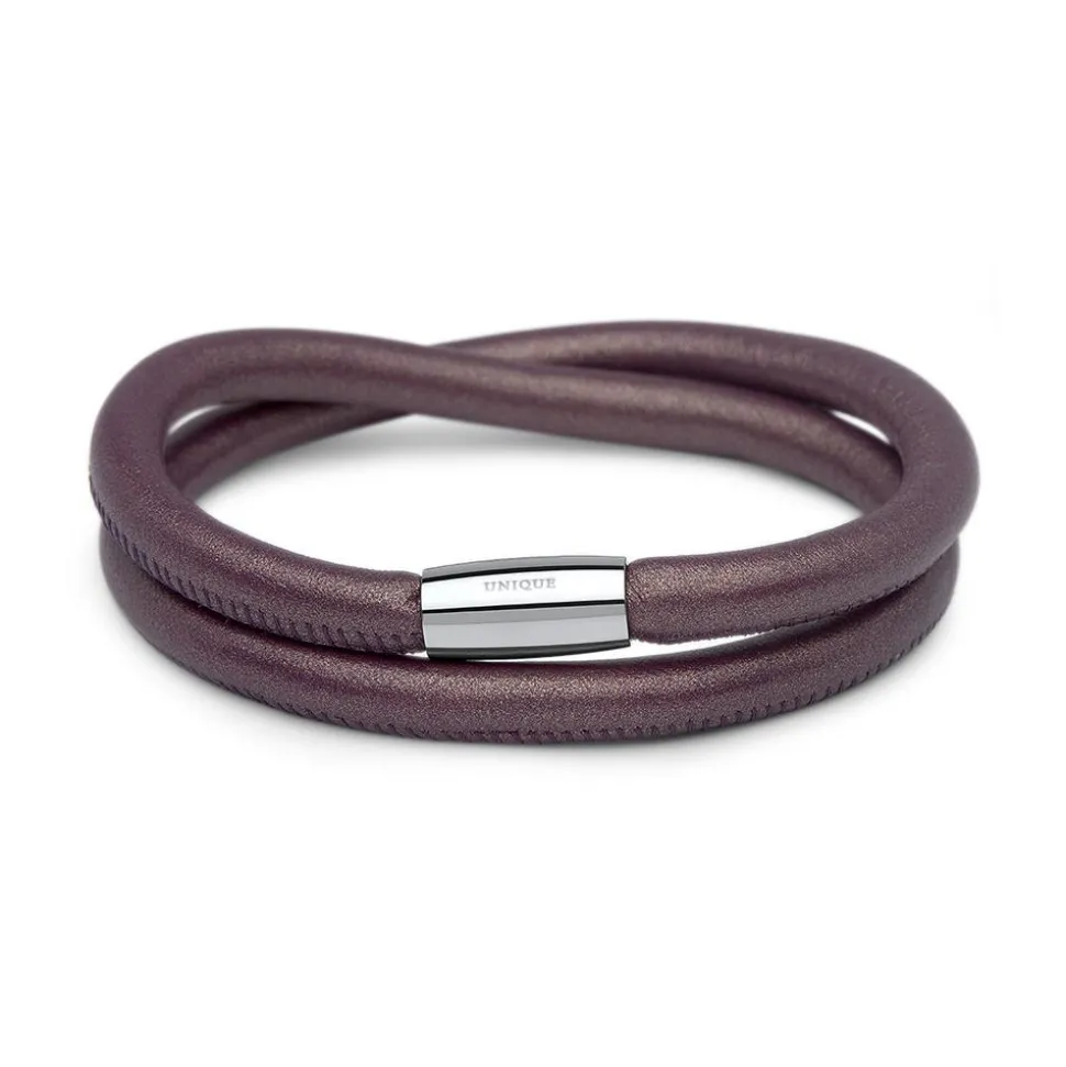 Zweireihig gewickeltes Lederarmband für Charms lila