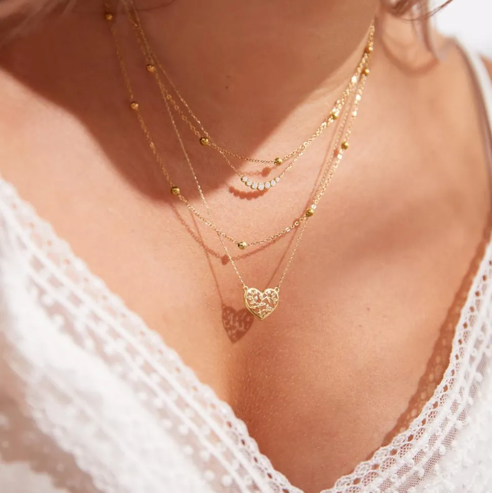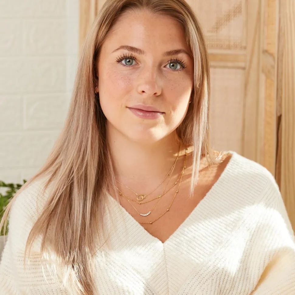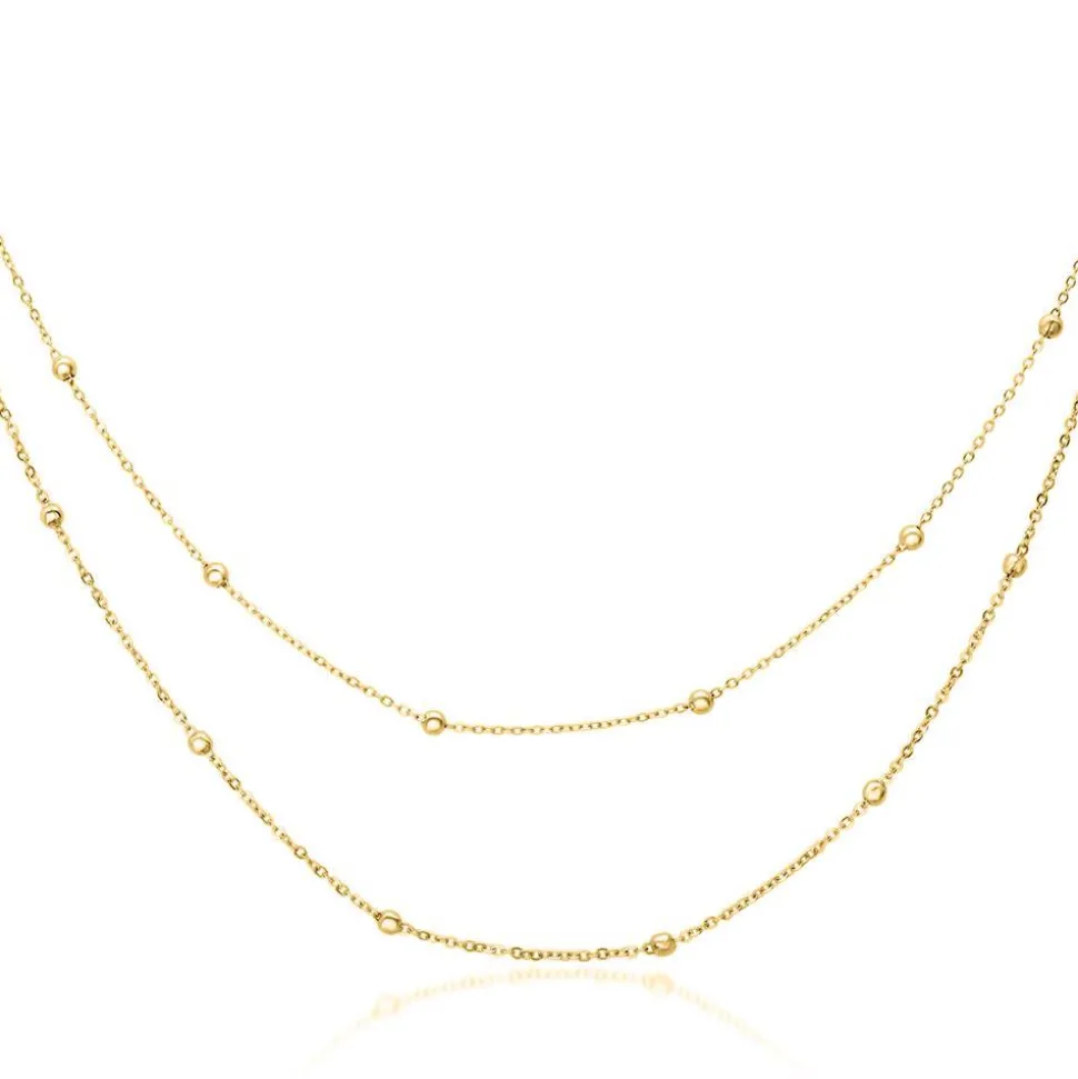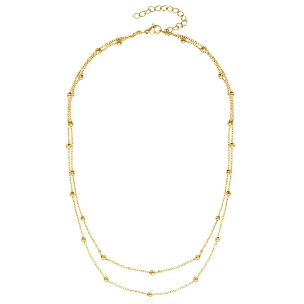 Mit ihrem unaufgeregtem Design passt diese Kette für Damen zu zahlreichen Looks! Sie ist aus Edelstahl gefertigt, welcher mit einer IP Gold-Beschichtung versehen ist. Sie besteht aus einer kürzeren und einer längeren Ankerkette, die von kleinen Kugeln geziert wird. Die längenverstellbare Halskette hat einen Karabinerverschluss.