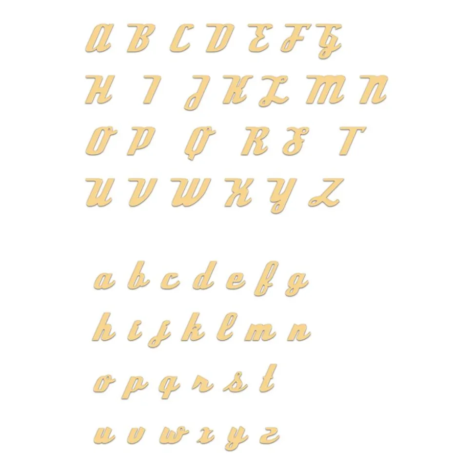 Die Längen beziehen sich auf die Kettenglieder ohne den Namensschriftzug. Die Kette verlängert sich dann jeweils um die Zeichenanzahl (maximal 12 Zeichen) des Namens oder Begriffs. Aus Bild 2 kannst Du die Optik der einzelnen Buchstaben entnehmen. Im finalen Schriftzug sind diese miteinander verbunden. Diese Darstellung der Einzelbuchstaben dient ausschließlich der besseren Erkennbarkeit.