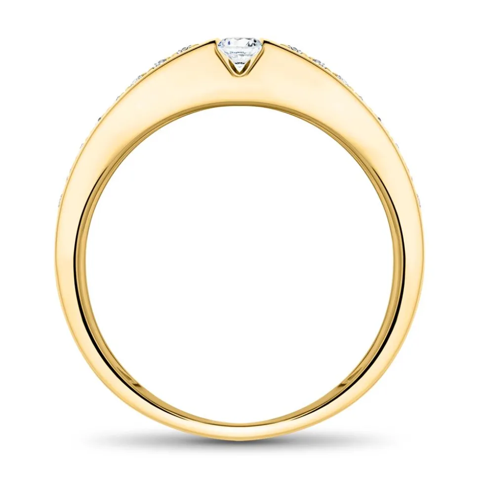 Ein traumhafter Klassiker – das ist dieser Verlobungsring! Er ist aus 585er Gold gefertigt und besitzt als Hauptstein einen Diamant (ca. 0,10 ct.) im Brillantschliff. Die Hälfte der Ringschiene wird von 16 Brillanten (gesamt: ca. 0,19 ct.) geziert. Alle verarbeiteten Diamanten sind klassifiziert als Feines Weiß (Top Wesselton) und die Reinheit fällt in die Kategorie SI (small inclusions). Bei uns wird Qualität groß geschrieben. Daher prüfen wir jedes einzelne Schmuckstück, bevor es unser Haus verlässt. Da uns auch ethische Aspekte am Herzen liegen, verarbeiten wir ausschließlich Diamanten aus konfliktfreien Quellen.
