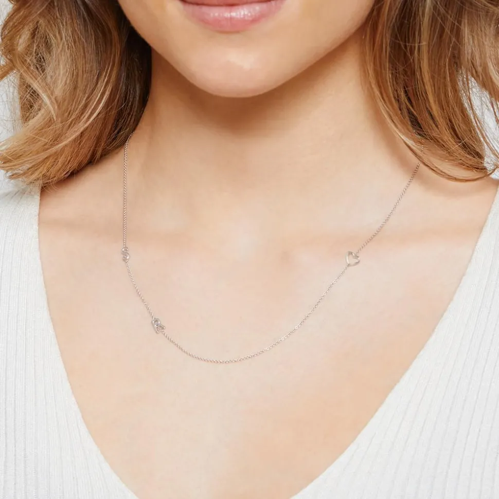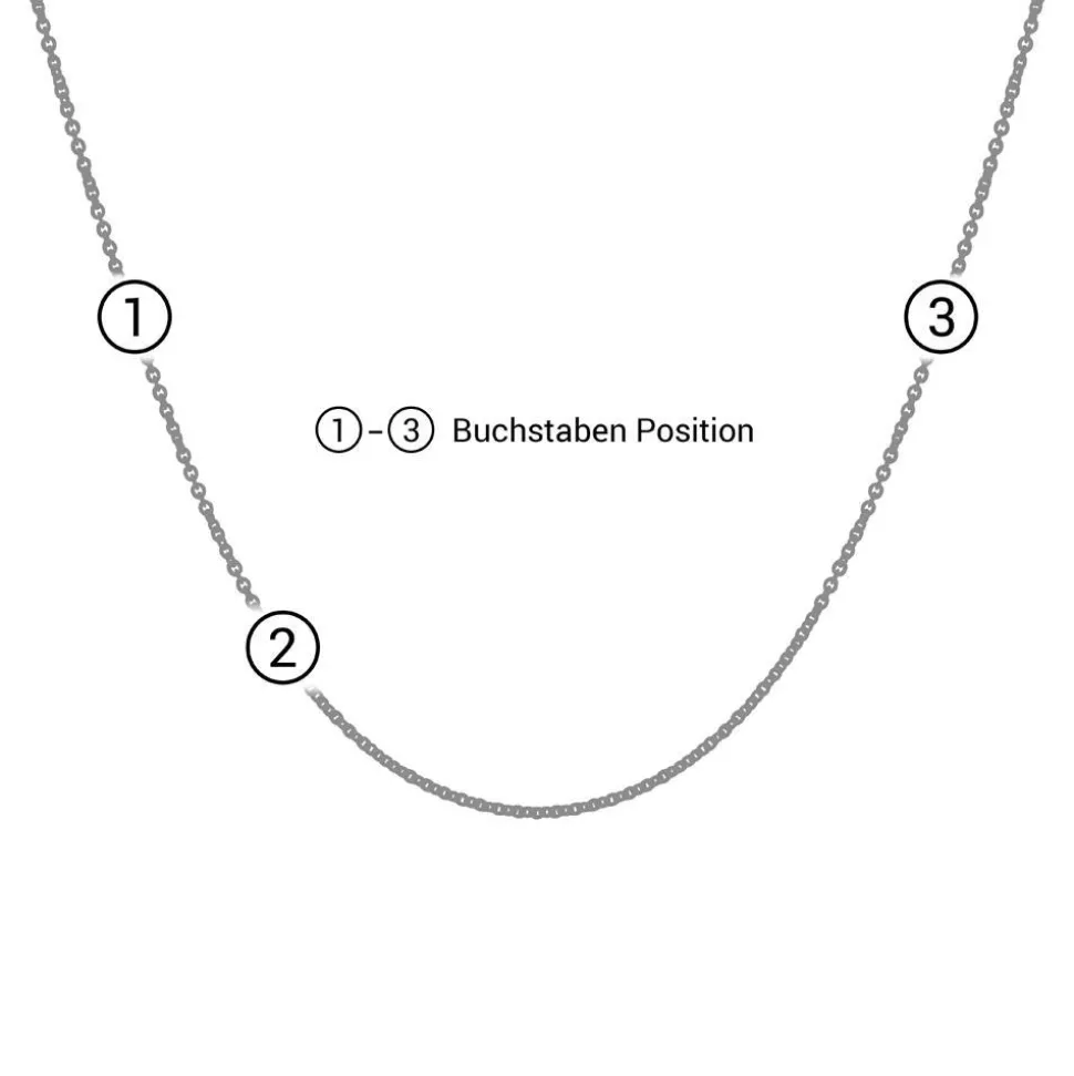 Elegant und trendig zugleich – das ist diese Damenkette aus 585er Weißgold. Zwischen die Ankerkettenglieder können drei frei wählbare Buchstaben, Symbole oder Zahlen eingearbeitet werden – perfekt für persönliche Statements. Für die Position der Buchstaben bitte das zweite Bild beachten. Die Position der Öse und die Größe der Elemente kann variieren. Die Größe liegt zwischen ca. 4-7mm je nach Element.