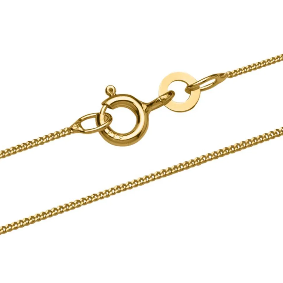 Hochwertige Panzerkette in 1,0mm Breite. Die Panzerkette ist aus echtem 333er Gold (8K) und entsprechend gestempelt. Die Kette verfügt über einen klassischen Federringverschluss. Die Oberfläche der Kette ist hochglanzpoliert.