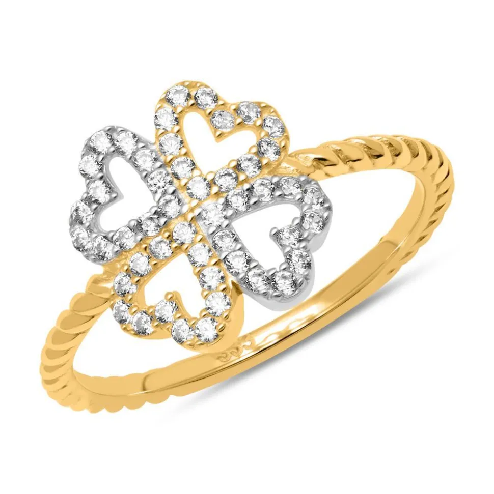 Ansprechendes Design – Ring Kleeblatt aus 8K Gold mit Zirkonia