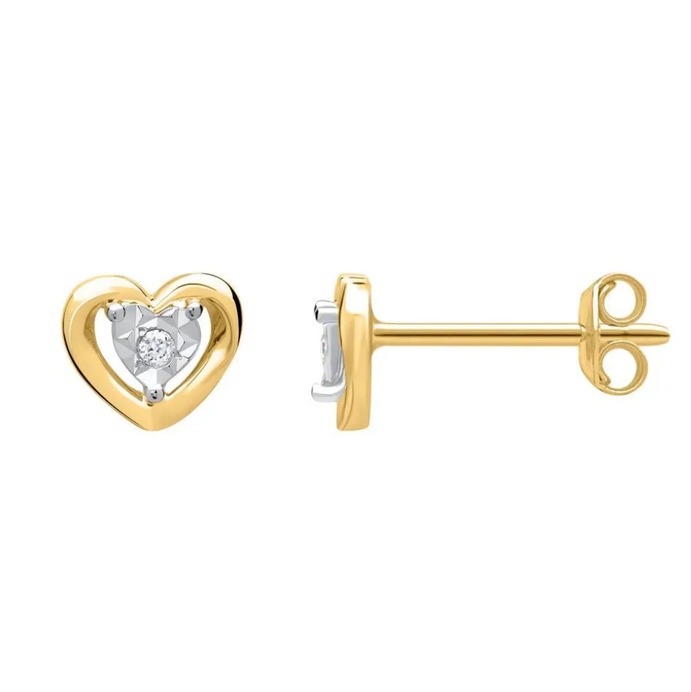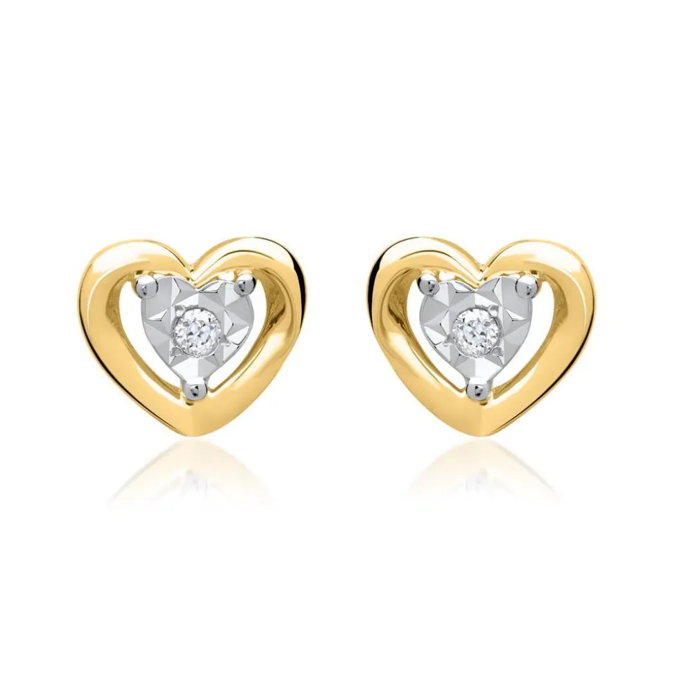 Herz, was willst du mehr? Ohrstecker aus 14-karätigem Gelbgold, verziert mit echten Diamanten