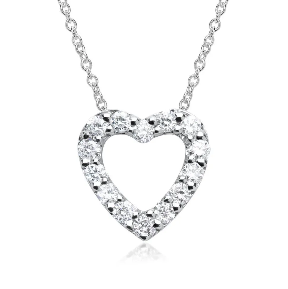 Mit vollem Herzen dabei – 585er Weißgold-Kette und Anhänger, der vollständig mit echten Diamanten besetzt ist