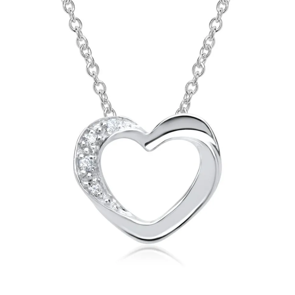 Schmuck in Herz-Form ist äußerst beliebt und das ist auch kein Wunder: Herzen passen zu fast jedem Look und was noch viel wichtiger ist, sie erzeugen Freude und vermitteln, wenn man sie verschenkt eine Botschaft, die dem Beschenkten verdeutlicht, wie sehr er einem am Herzen liegt. Deshalb zaubert auch diese fein gewirkte Kette mit dem hinreißenden herzförmigen Anhänger aus echtem Weißgold jedem Betrachter ein Lächeln ins Gesicht. Durch die echten Diamanten, die auf dem Herz-Anhänger eingefasst wurden, entsteht ein atemberaubendes Funkeln, das neben der raffinierten Kantenführung der Blickfang dieses Schmuckstücks ist.