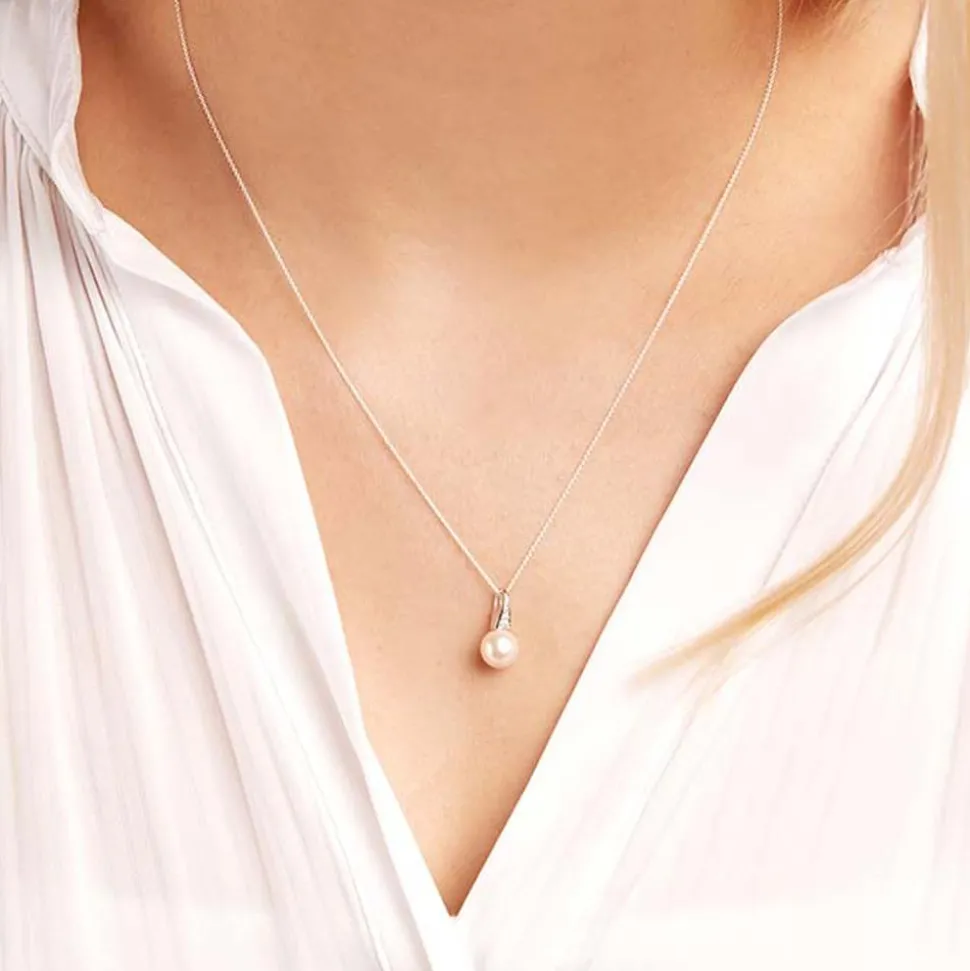 Klassischer Schimmer – Kette und Anhänger aus Weißgold mit einer runden Perle und echten Diamanten