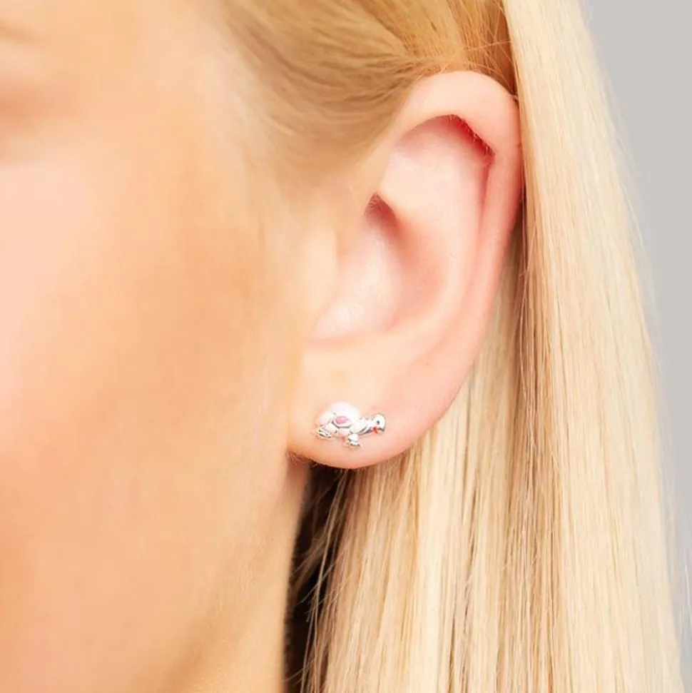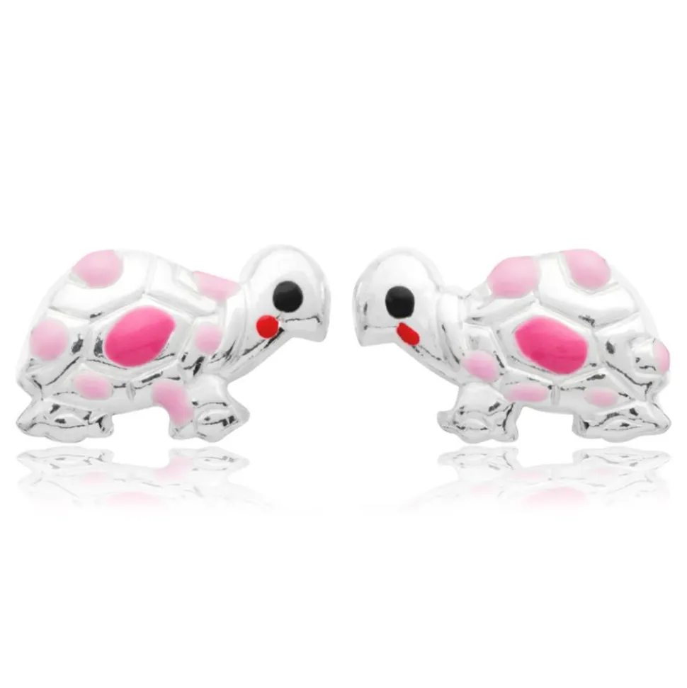 Pinke Kinderohrstecker mit Schildkrötenmotiv. Die Ohrstecker sind aus echtem 925 Sterling Silber.