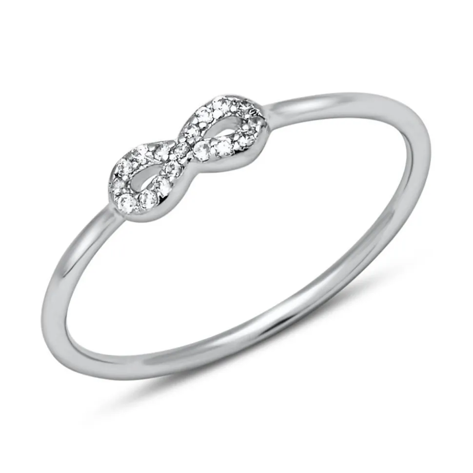 Dieser filigran gearbeitete Ring aus hochwertigem 925er Silber ist im Grunde relativ puristisch gehalten. Die Ringschiene ist schmal und abgerundet und bietet daher einen hohen Tragekomfort. Ein Ring für jeden Tag – mit Potenzial zum Lieblingsring. Eyecatcher ist das Infinitysymbol mit funkelndem Zirkonia-Besatz. Der Infinity-Ring ist rhodiniert und somit anlaufgeschützt und robuster gegenüber äußeren Einflüssen.