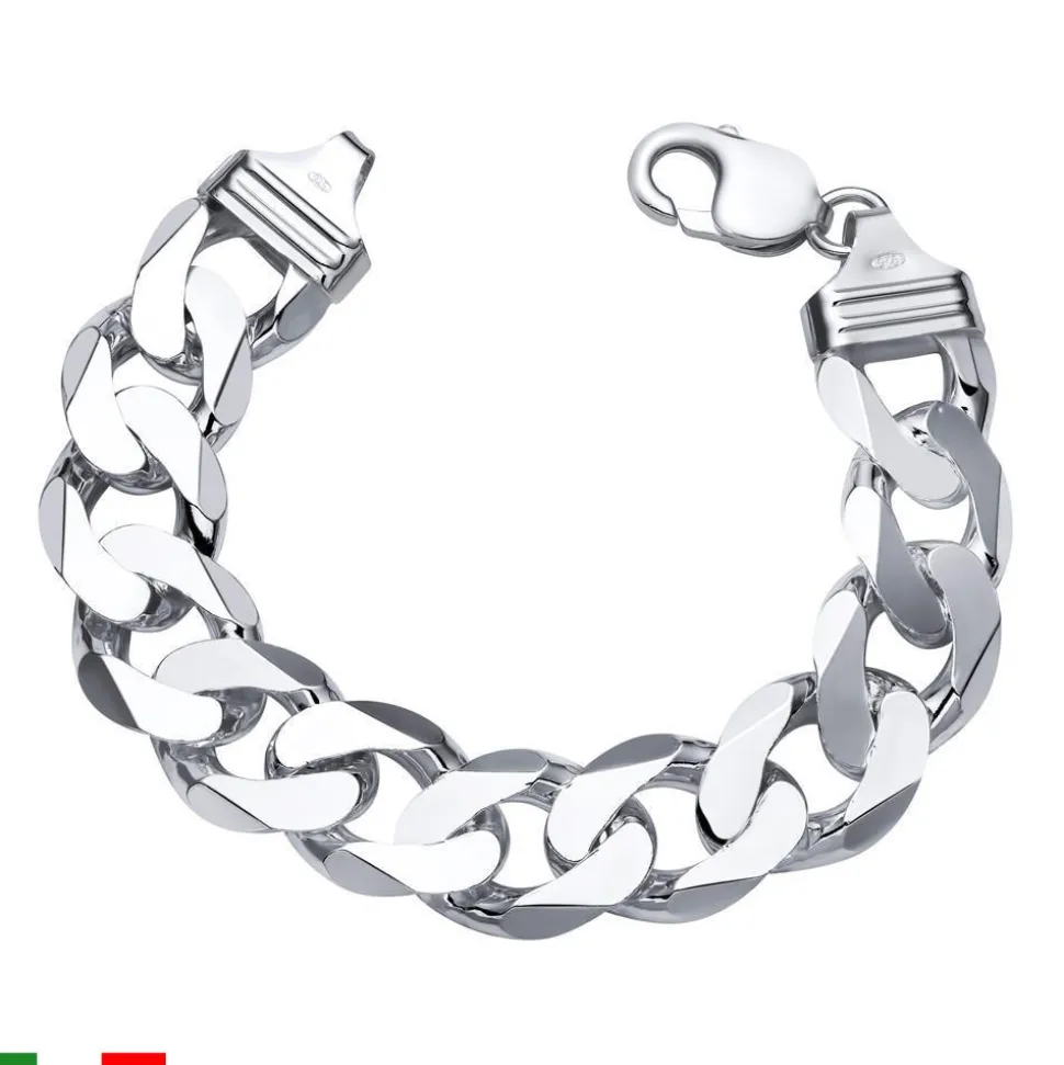 Massives Panzerarmband (Flachpanzerkette) in 17mm Breite. Das Panzerarmband ist aus echtem 925 Sterling Silber und entsprechend gestempelt. Das Armband verfügt über einen praktischen Karabinerverschluss sowie hochwertige Endeinfassungen. Die Oberfläche des Panzerarmbands ist hochglanzpoliert. Aufgrund von produktionsbedingten Abweichungen können Gewicht oder Breite des Armbands um bis zu 5% variieren.