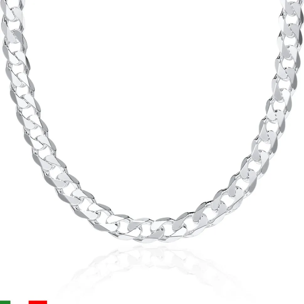 Massive Panzerkette (Flachpanzerkette) in 8mm Breite. Die Panzerkette ist aus echtem 925 Sterling Silber und entsprechend gestempelt. Die Kette verfügt über einen praktischen Karabinerverschluss sowie hochwertige Endeinfassungen. Die Oberfläche der Panzerkette ist hochglanzpoliert. Aufgrund von produktionsbedingten Abweichungen können Gewicht oder Breite der Kette um bis zu 5% variieren.