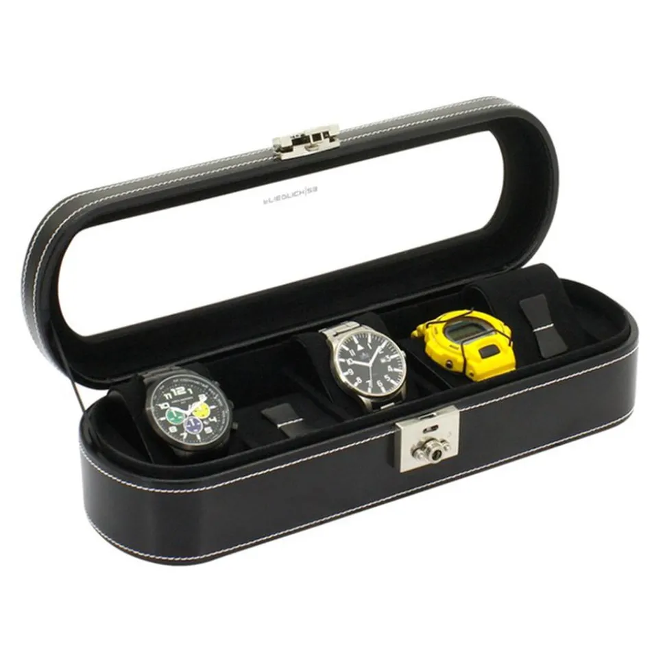 Schutz für Ihre Uhren – Uhrenkasten aus schwarzem Leder