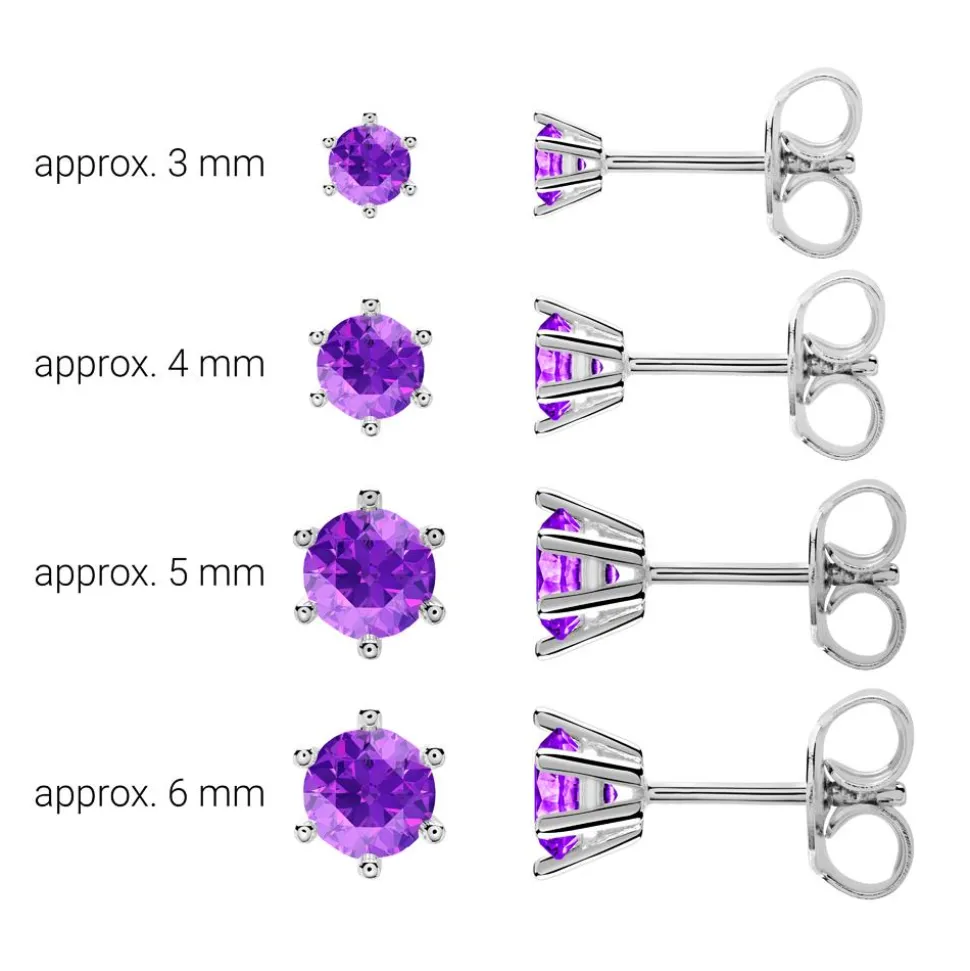 Edel und farbenfroh zugleich – das ist dieser Ohrschmuck für Damen aus 14-karätigem Weißgold. Jeder Stecker wird von einem krappengefassten Amethyst (Qualität: AAA) geziert. Wir bieten verschiedene Steingrößen (Steingewichte) an, daher bitte im Auswahlfeld die gewünschte Größe wählen.