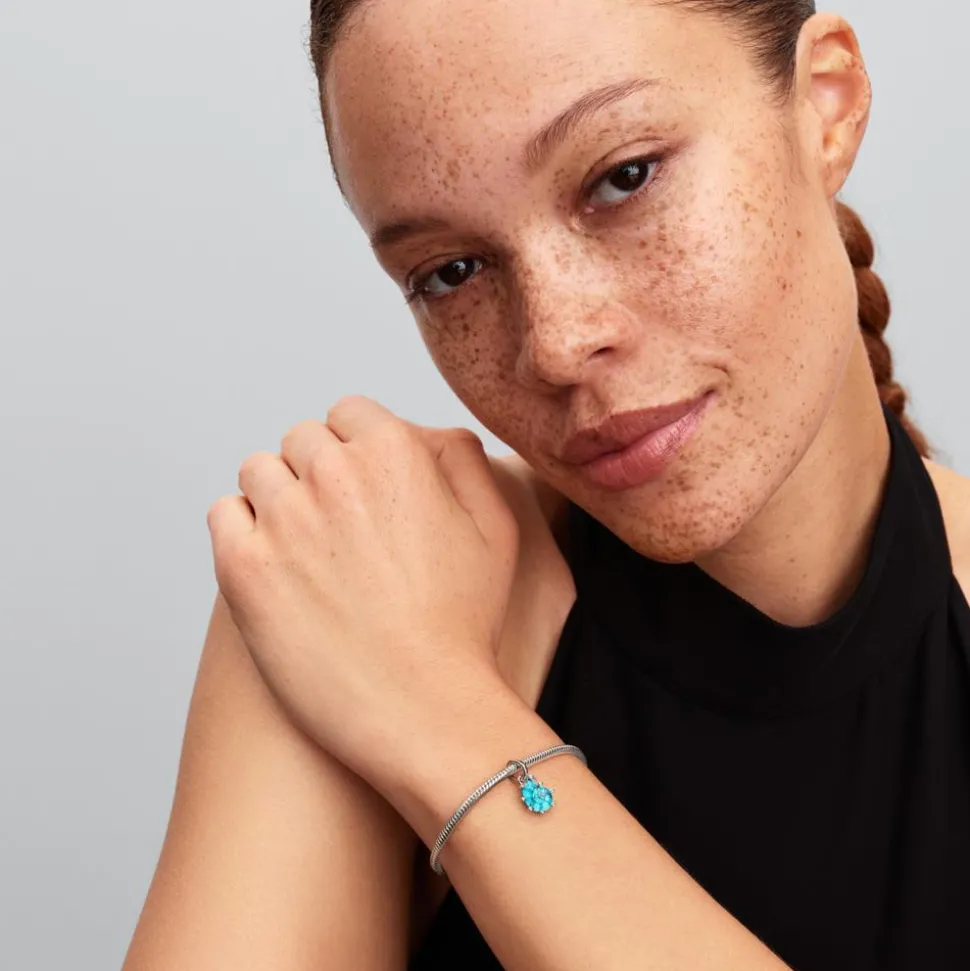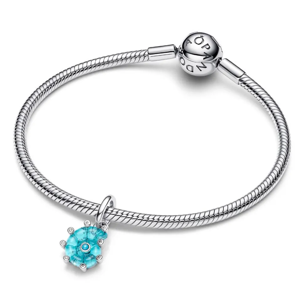 Dieser Damenanhänger aus recyceltem 925er Silber ist die perfekte Ergänzung für Deinen Strandlook. Er bildet eine Meeresschnecke ab, deren Körper aus blauem Glas besteht und in der Mitte einen Türkis (synth.) fasst. Zudem ist sie um das Glas herum mit Zirkonia und blauen Schmuckkristallen besetzt, die für ein umwerfendes Funkeln sorgen. Kombiniert werden kann der Charm-Anhänger mit Accessoires aus der ME- und Moments-Kollektion.