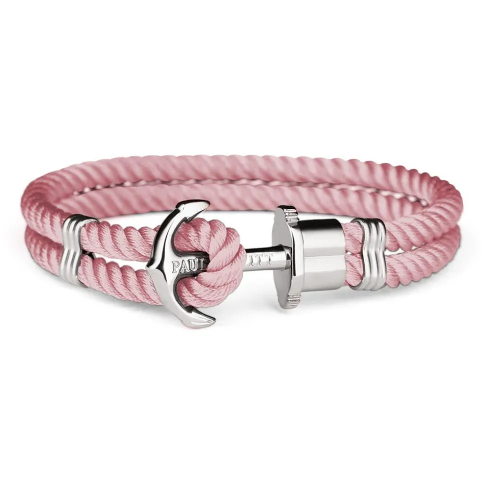 Lässig und feminin – das ist dieses Damenarmband aus gekordeltem altrosafarbenem Nylon, welcher doppelt gelegt ist. Durch den silbernen Anker aus Edelstahl mit dem geprägten Makren-Schriftzug und die gegenüberliegende Öse wird das Armband bequem verschlossen.