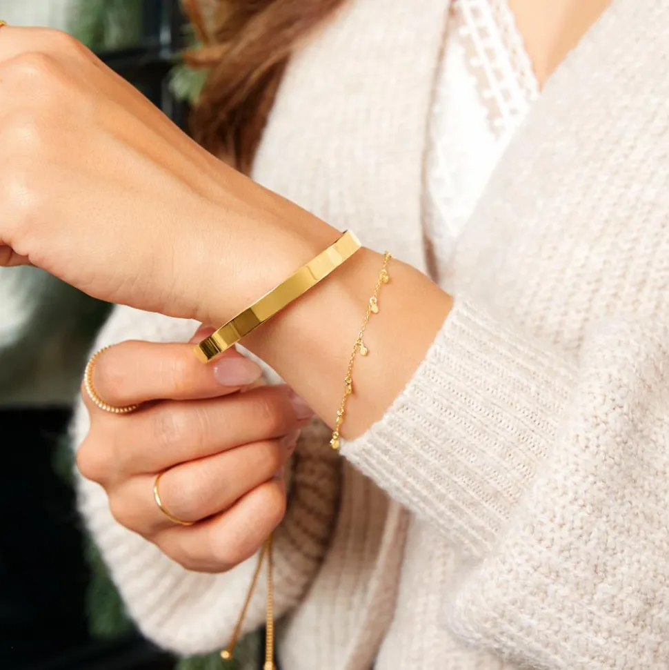 Dieses Armband ist einfach bezaubernd-lässig! Es besteht aus vergoldetem Sterlingsilber und wird von zahlreichen runden Anhängern geziert. Geschlossen wird das längenverstellbare Armband mit einem Federringverschluss.