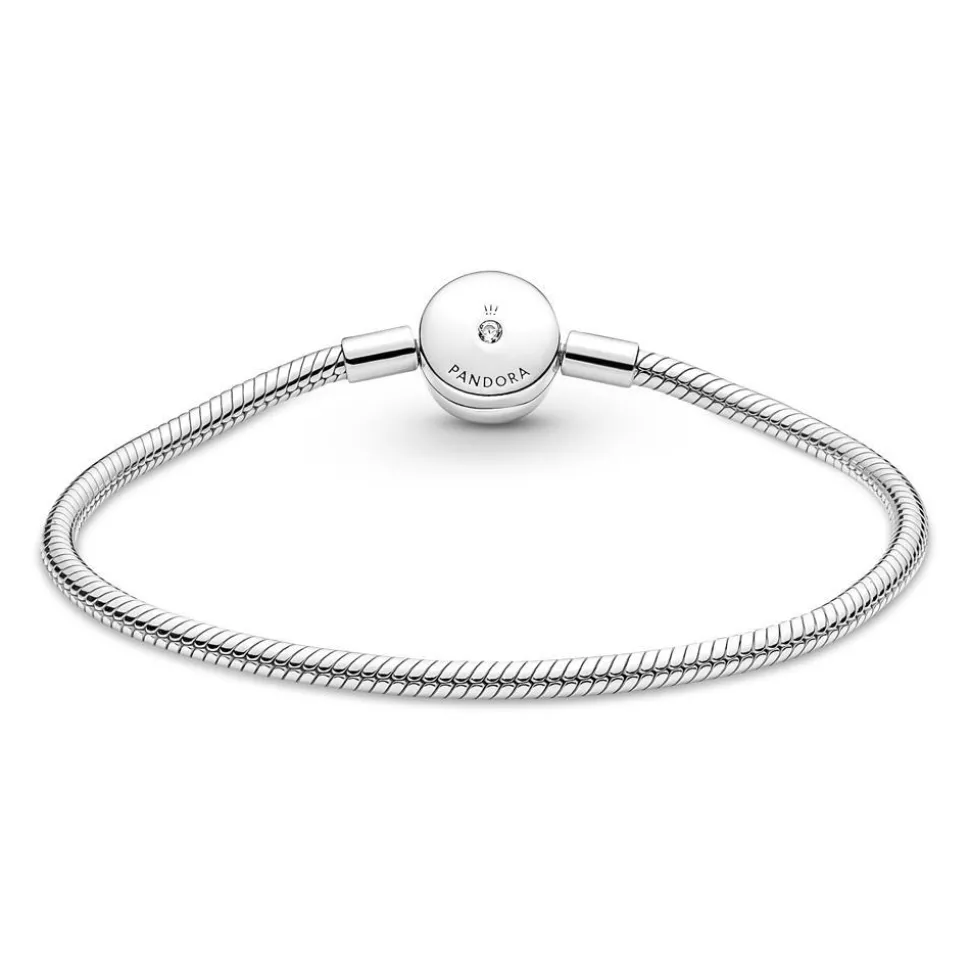 Dieses Damenarmband ist die perfekte Basis für eigene Schmuckkreationen. Es ist aus Sterlingsilber gefertigt und eignet sich perfekt, um Charms, Beads und Dangles daran zu befestigen. Der Verschluss wird von kreisförmig angeordneten Zirkoniasteinen geziert.