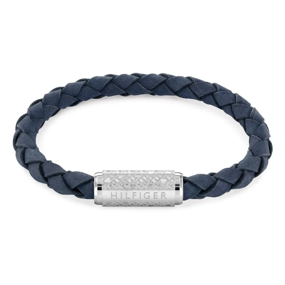 Mit einem trendigen Aussehen begeistert dieses Armband für Herren. Aus geflochtenem, blauem Wildleder gefertigt, wird es von einem Magnetverschluss aus Edelstahl geziert. Der drehbare Verschluss ermöglicht eine Anpassung der Armbandweite und trägt ein graviertes Muster aus den Markeninitialen sowie den Markenschriftzug.