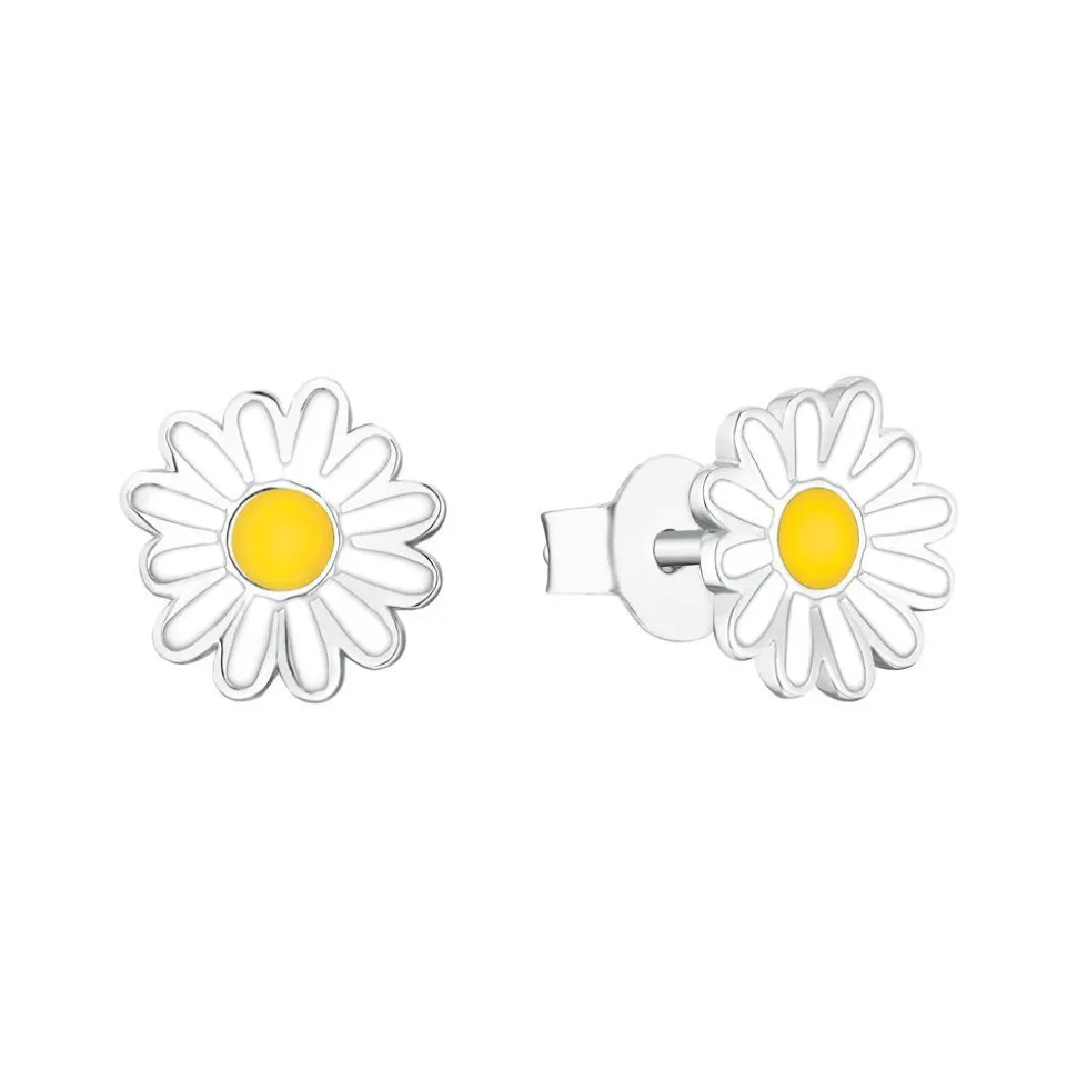 Entzückend floral – das sind diese Ohrstecker für Kinder aus rhodiniertem und somit anlaufgeschütztem Sterlingsilber. Jeder Stecker hat die Form eines Gänseblümchens, welches mit weißer und gelber Emaille beschichtet ist.