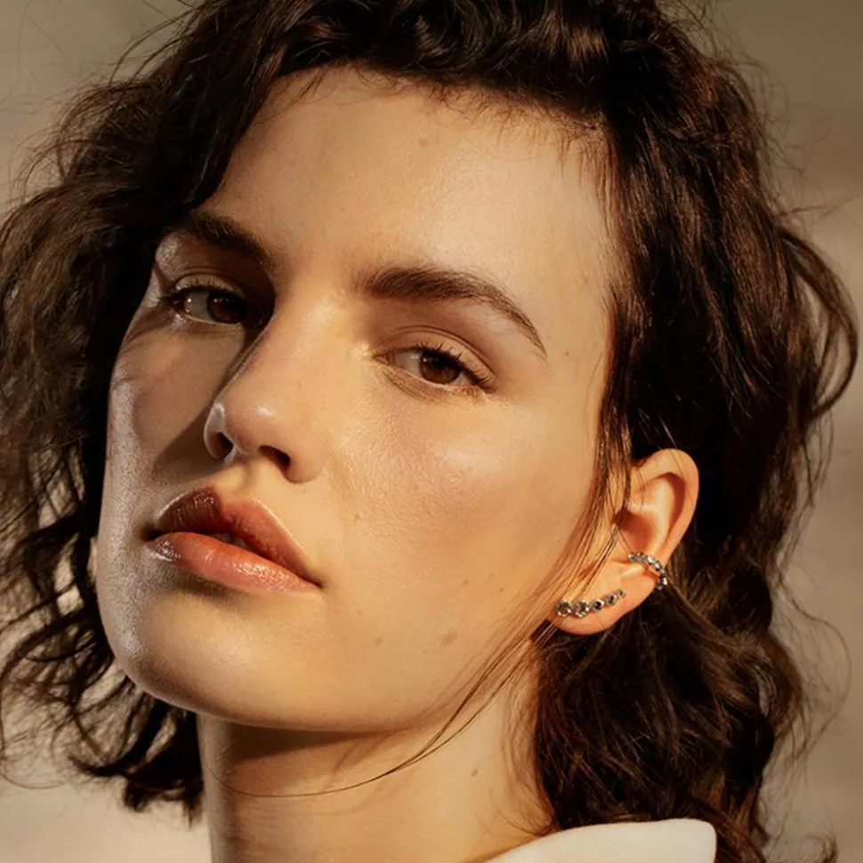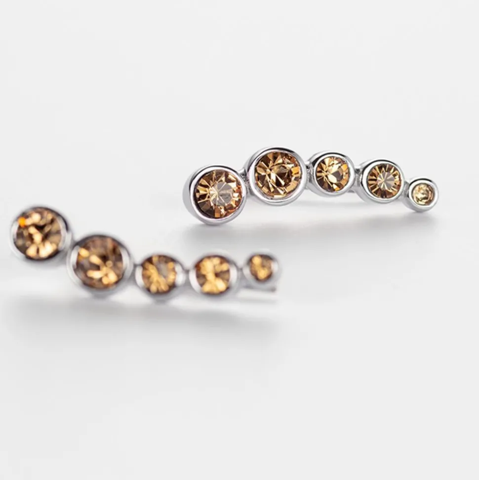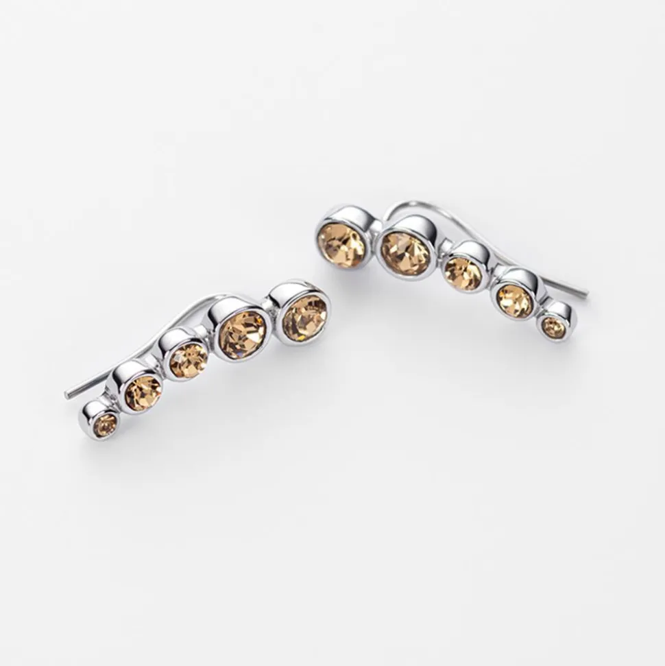 Zauberhaft modern – das sind diese Ear Climber für Damen. Sie sind aus Edelstahl gefertigt und werden von champagnerfarbenen Glassteinen geziert.