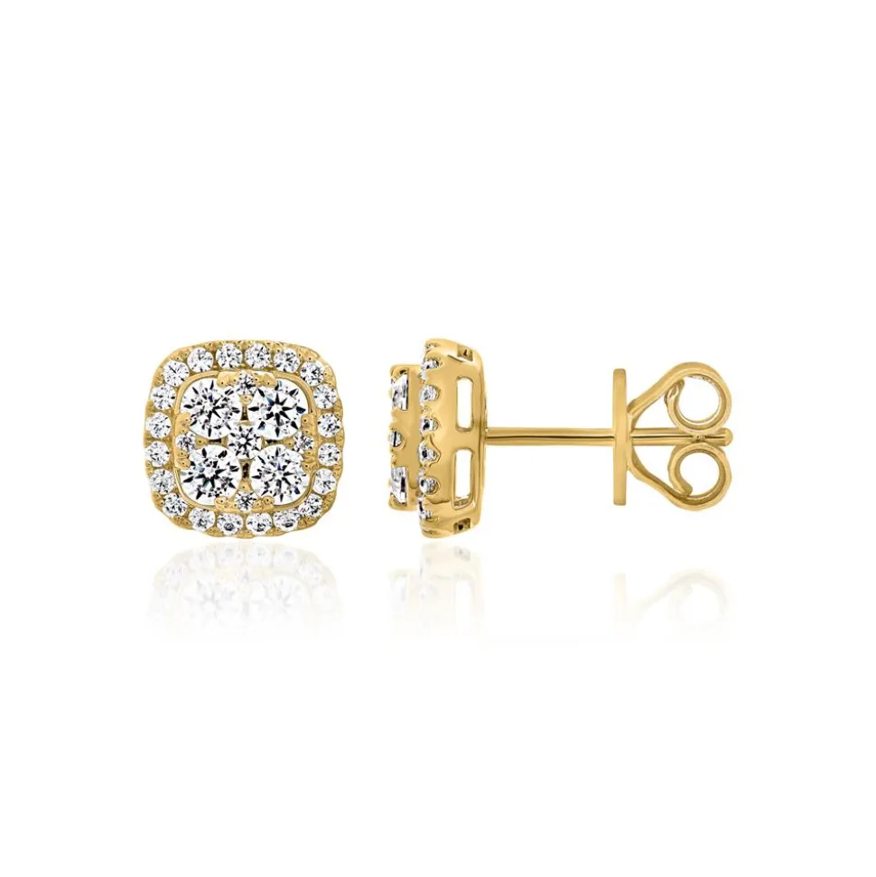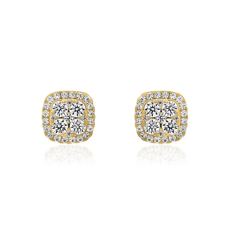 Zeitlose Klassiker – das sind diese Ohrstecker für Damen. Sie können wahlweise in 585er oder 750er Gelbgold bestellt werden. Bitte die gewünschte Legierung im Drop-down-Feld auswählen. Die Stecker sind mit Brillanten (gesamt: 58; ca. 0,99 ct.) besetzt. Die Farbe dieser fällt in die Kategorie „Top Wesselton“, die Reinheit ist mit „small inclusions“ klassifiziert und sie stammen selbstverständlich aus konfliktfreien Quellen.