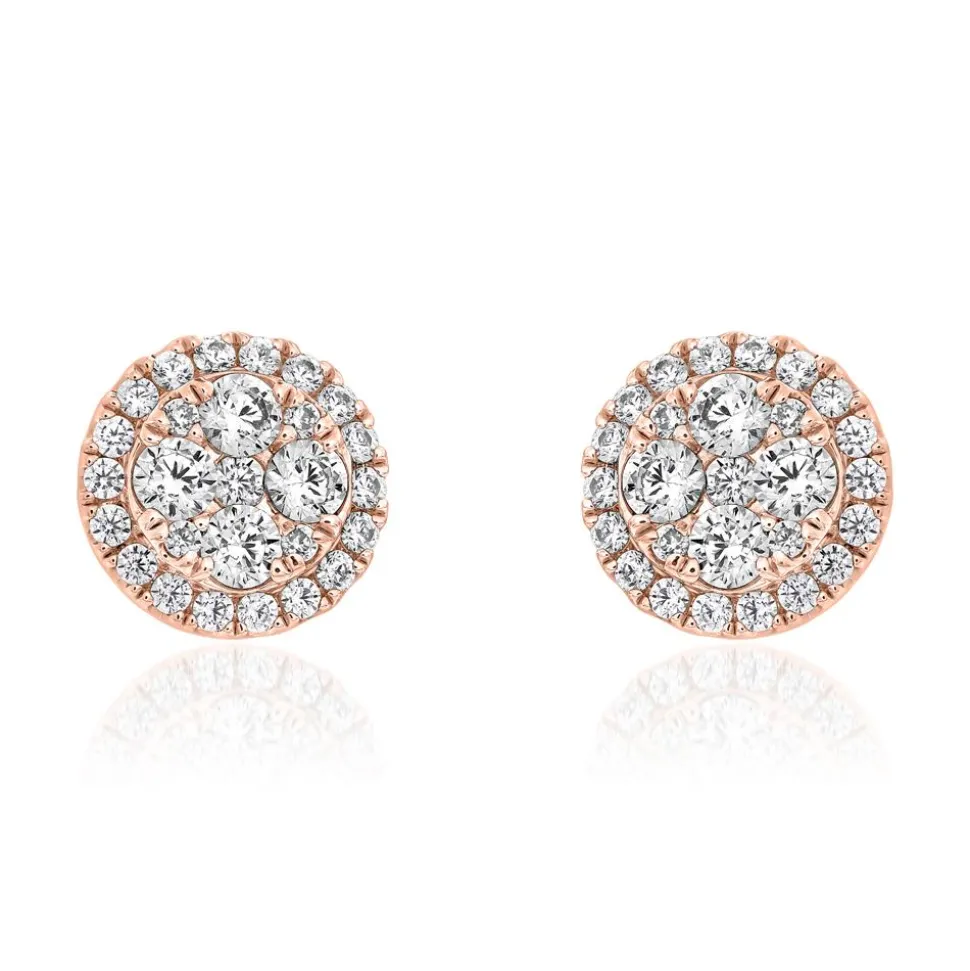Diese Ohrstecker für Damen ziehen bewundernde Blicke magisch an! Es kann gewählt werden, ob sie aus 585er oder 750er Roségold bestehen sollen. Dafür bitte die entsprechende Legierung im Drop-down-Feld auswählen. Jeder Stecker ist mit verschieden großen (schweren) Diamanten (zusammen: 54; ca. 0,82 ct.) im Brillantschliff besetzt. Die Farbe dieser fällt in die Kategorie Top Wesselton und die Reinheit ist mit SI klassifiziert. Unsere Diamanten stammen ausschließlich aus konfliktfreien Quellen.