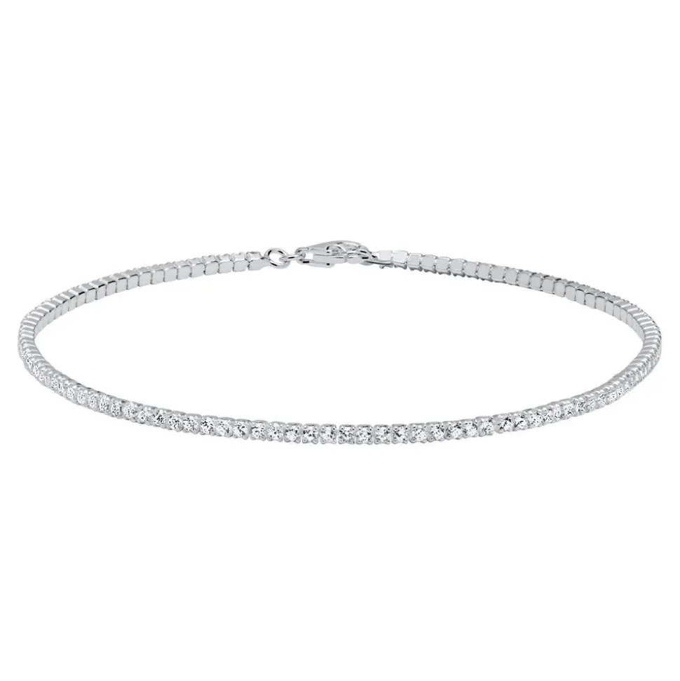 Bei diesem zauberhaften Damenarmband reihen sich reinweiße Zirkoniasteine harmonisch aneinander. Die funkelnden Schmucksteine sind einzeln gefasst und sitzen in Krappenfassungen aus 925er Sterlingsilber. Die beweglichen Fassungen der Zirkonia passen sich flexibel an jedes Handglenek an, so dass ein hoher Tragekomfort gewährleistet ist. Mit seiner edlen und zeitlosen Optik passt das Armband zu zahlreichen Looks und ist der ideale Begleiter zu den verschiedensten Veranstaltungen. Das Armband besitzt einen klassischen Karabinerverschluss und die hochwertige Rhodinierung sorgt dafür, dass das Armband nicht anläuft.