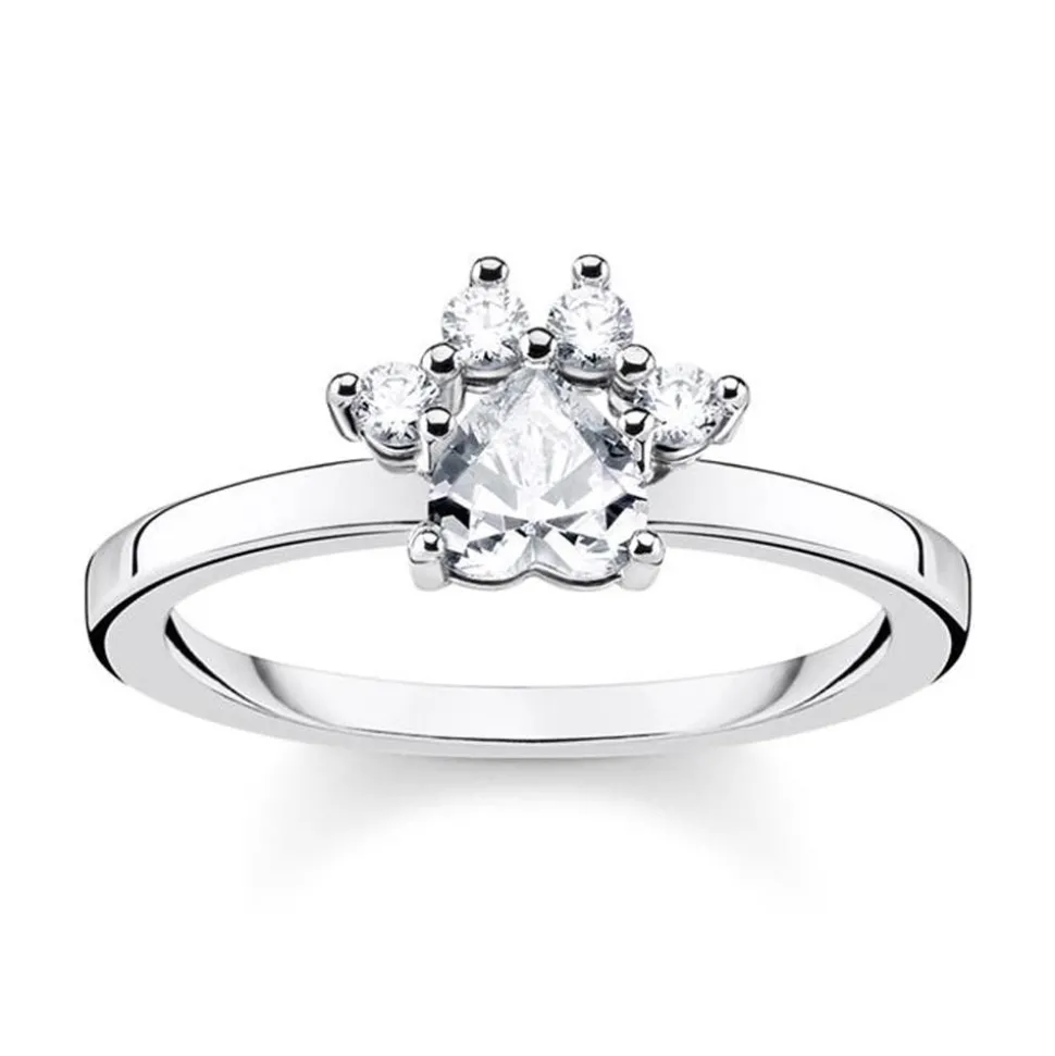 Das perfekte Accessoire für alle Katzenliebhaber – das ist dieser Ring aus Sterlingsilber. Die weißen Zirkoniasteine sind so angeordnet, dass sie eine funkelnde Katzenpfote bilden. Die schmale Ringschiene sorgt für einen hohen Tragekomfort des Ringes.