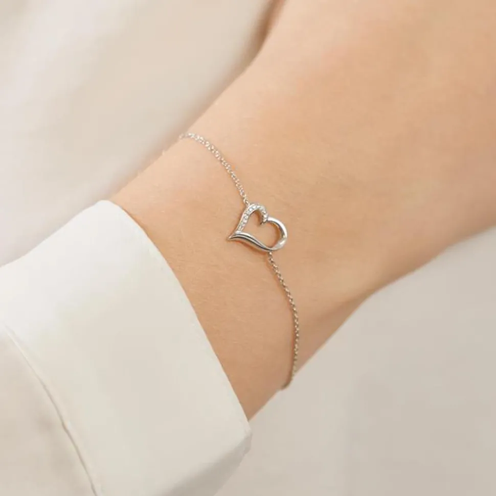 Dieses filigrane Armband aus 14K Weißgold ist einfach zum Verlieben! Es besitzt eine zurückhaltende und zugleich wirkungsvolle Optik, die zu zahlreichen Styles passen wird. Zwischen die Kettenglieder ist eine Herzform eingearbeitet, die zur Hälfte mit 11 brillantgeschliffenen Diamanten (ca. 0,03 ct. Farbe: Top Wesselton, Reinheit: small inclusions) besetzt ist. Durch das liebevolle Design eignet sich das Armband perfekt als Geschenk, um sich selbst oder einer geliebten Person eine Freude zu machen. Für uns ist es selbstverständlich, dass unsere Diamanten ausschließlich aus konfliktfreien Quellen stammen.