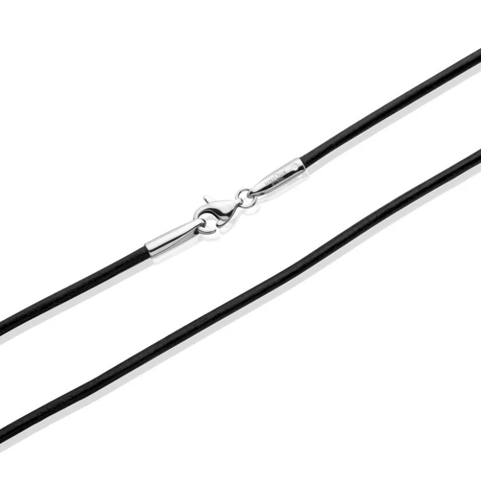Exklusive Lederkette im modernen Design mit einem Edelstahl Karabinerverschluss und hohem Tragekomfort.