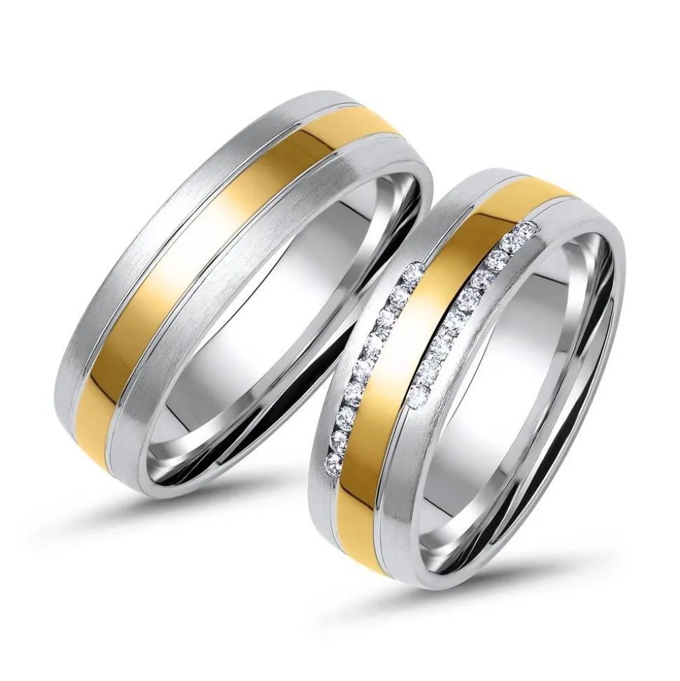 Wirkungsvoll – Trauringe aus Gelb- und Weißgold mit 18 Brillanten