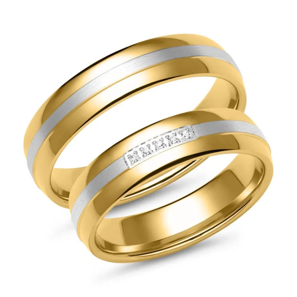 Ansprechend schön – Trauringe aus Gelb- und Weißgold mit 5 Brillanten