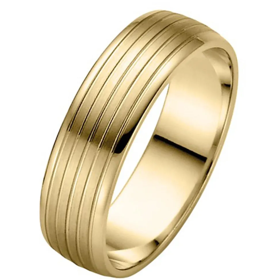Ein ansprechendes Eheringpaar aus der Kollektion „Pair 2“ von Rauschmayer. Die Eheringe sind aus feinmattem Gold gefertigt und besitzen fünf parallel verlaufende Glanzrillen. Die Ränder der Eheringe sind poliert. Der Damenring hebt sich besonders durch seine 3 brillantgeschliffenen Diamanten hervor. Die Brillanten (insgesamt ca. 0,015 ct.) verfügen über die Farbe „Wesselton“ und die Reinheit „small inclusions“. Ihr Ursprung ist konfliktfrei. Unser erfahrenes Team von Graveuren fügt gerne noch eine individuelle Gravur hinzu.