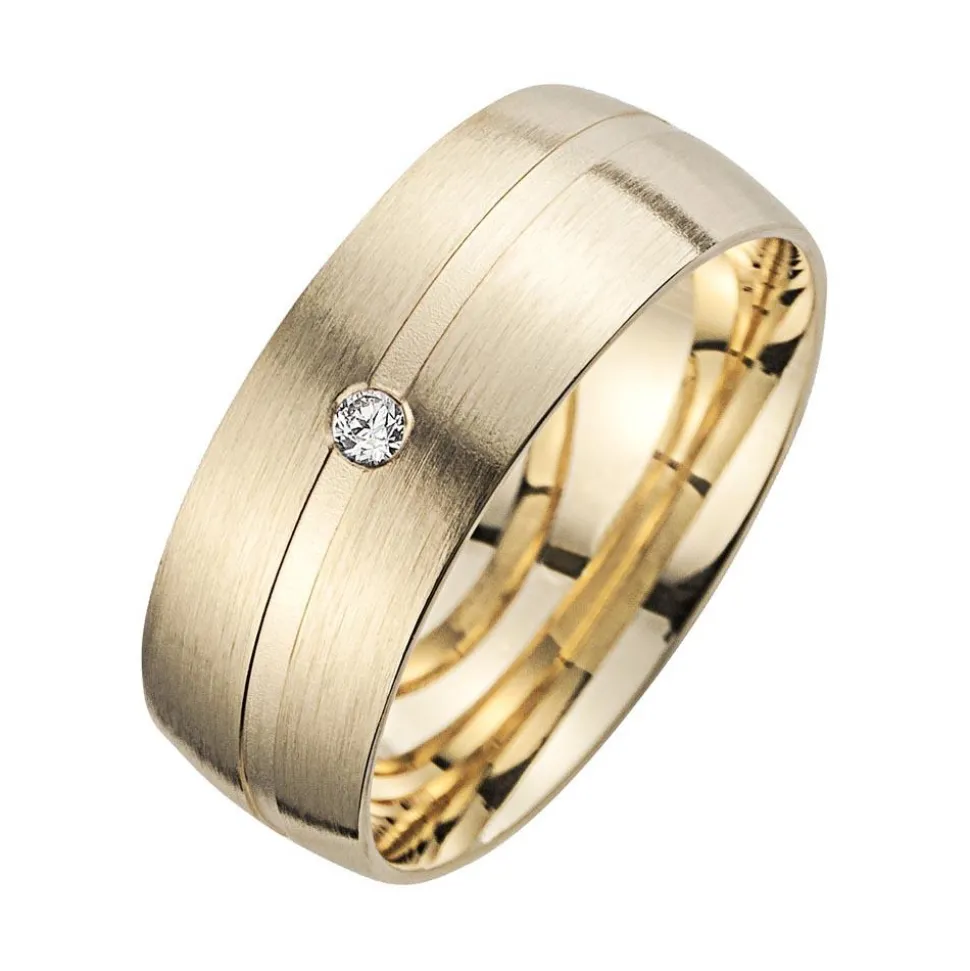 Gravierbare Trauringe in Gelbgold mit Diamant