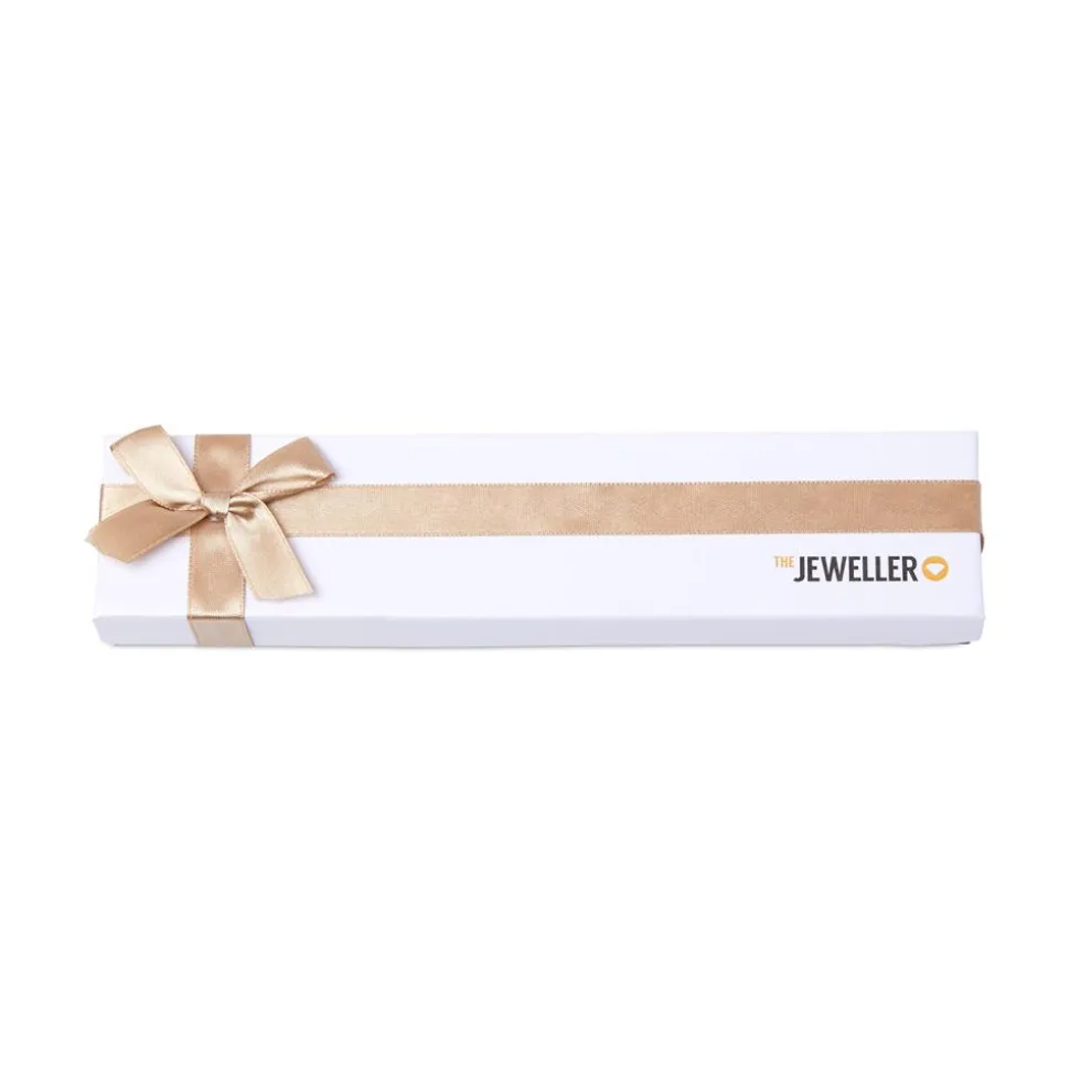 Mit diesem Etui können Schmuckgeschenke stilvoll in Szene gesetzt werden! Es besteht aus stabilem Karton, wobei der weiße Deckel mit einem goldenen Schimmer überzogen und die Unterseite in dezentem Anthrazit gehalten ist. Blickfang ist die beigefarbene Schleife. Das Geschenketui besitzt ein weißes Inlay aus Schaumstoff, welches mit Samt überzogen ist und bietet die Möglichkeit Armbänder darin zu platzieren.