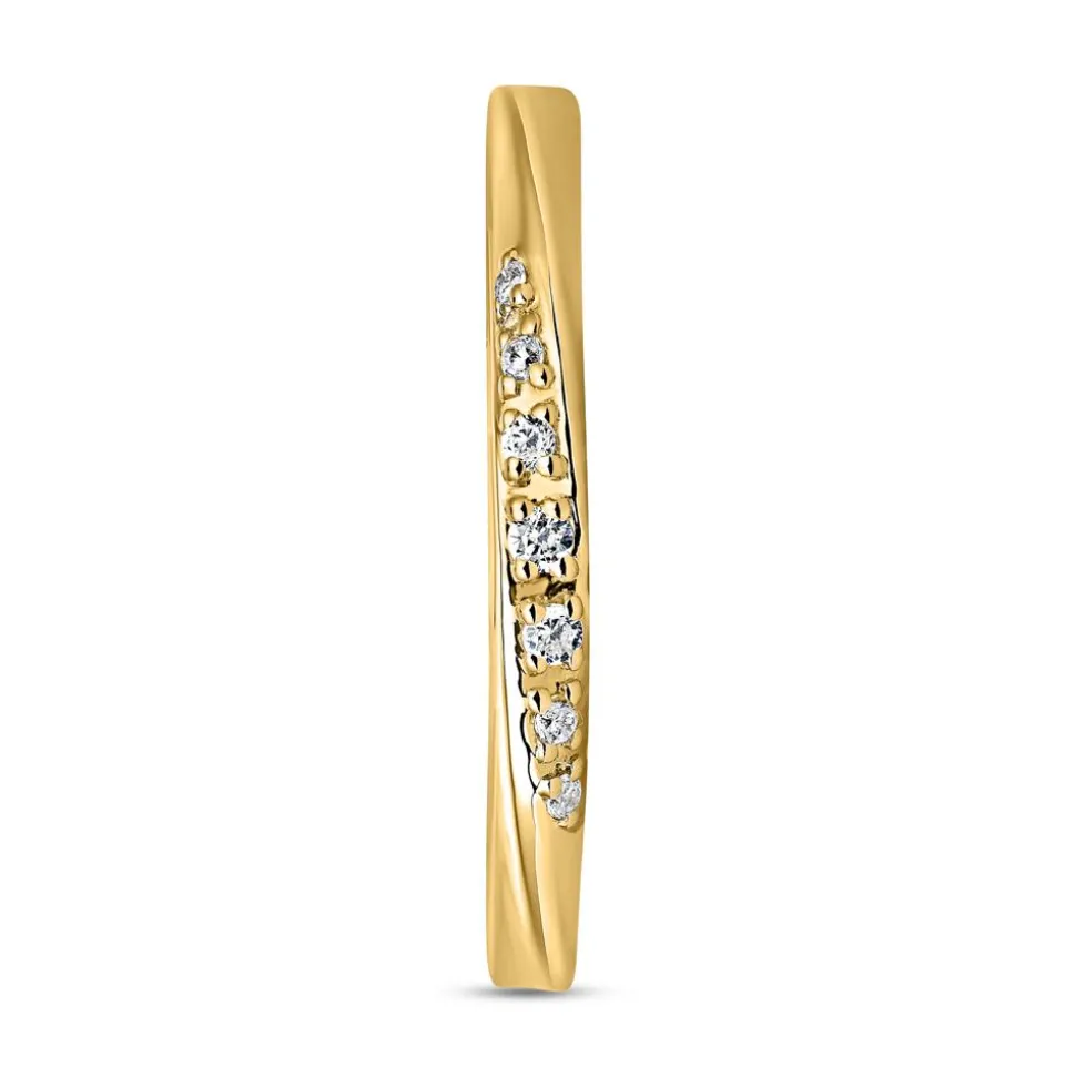 Absolut stilvoll – so präsentiert sich dieser goldene Ring für Damen. Die Ringschiene besitzt im vorderen Bereich ein geschwungenes Design und ist mit 7 brillantgeschliffenen Diamanten besetzt. Diese verfügen insgesamt über ca. 0,05 ct. und die Farbe „Top Wesselton“ sowie die Reinheit „small inclusions“. Ihre Herkunft ist selbstverständlich konfliktfrei. Da der Ring in zwei Legierungen zur Verfügung steht (entweder 585er oder 750er Gelbgold), kann die gewünschte Legierung über das Drop-down-Feld ausgewählt werden.