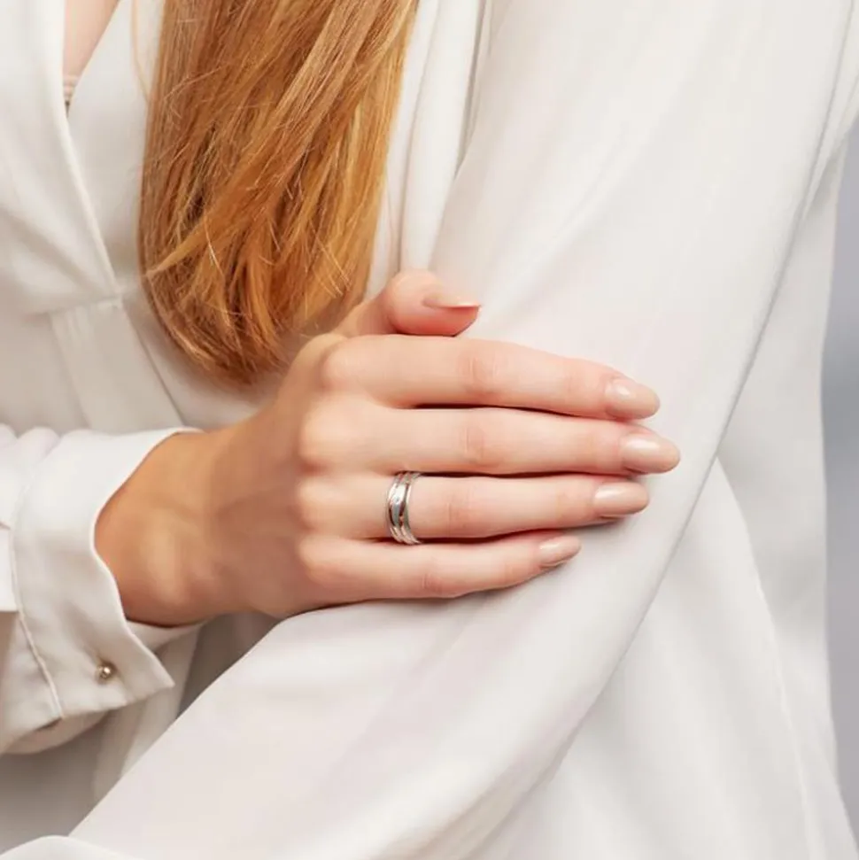 Traumhaft schön und modern – das sind diese Eheringe aus gebürtstetem Sterlingsilber (rhodiniert) mit zwei geschwungenen, rosévergoldeten Glanzrillen. Der Damenring wird zusätzlich von einem weißen Zirkonia geziert. Beide Ringe können auf der Innenseite mit einer liebevollen Gravur versehen werden.